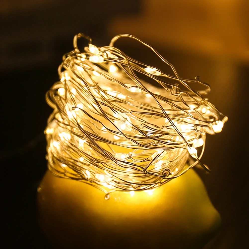 Светодиодная гирлянда с медным проводом, Рождественская лампа на батарейках, комнатное украшение для спальни, дома, свадьбы, нового года