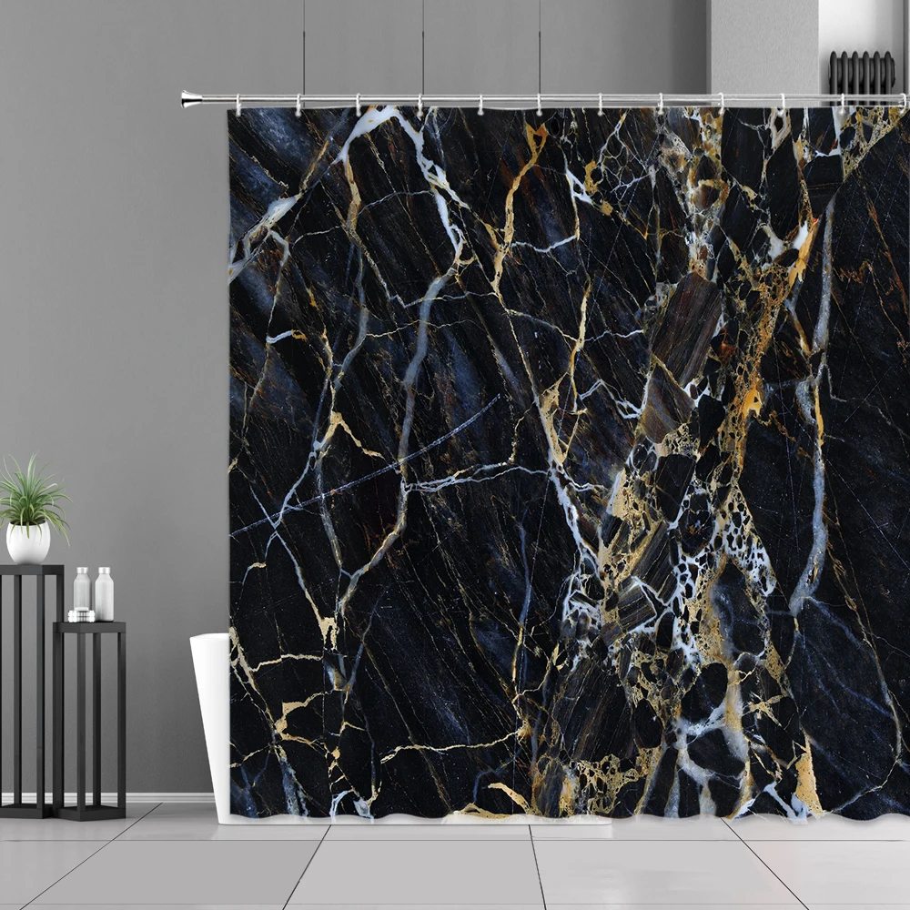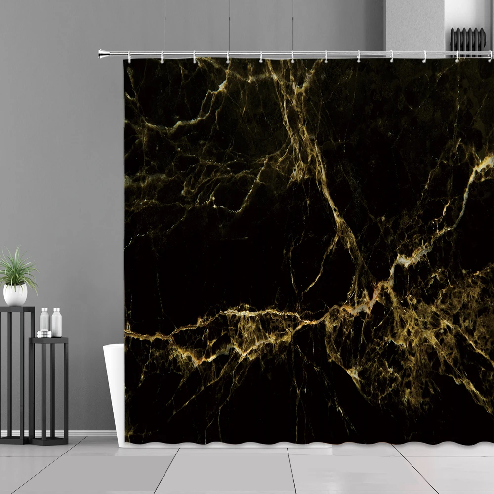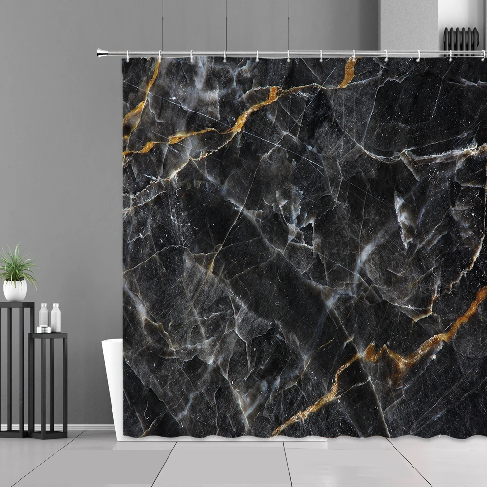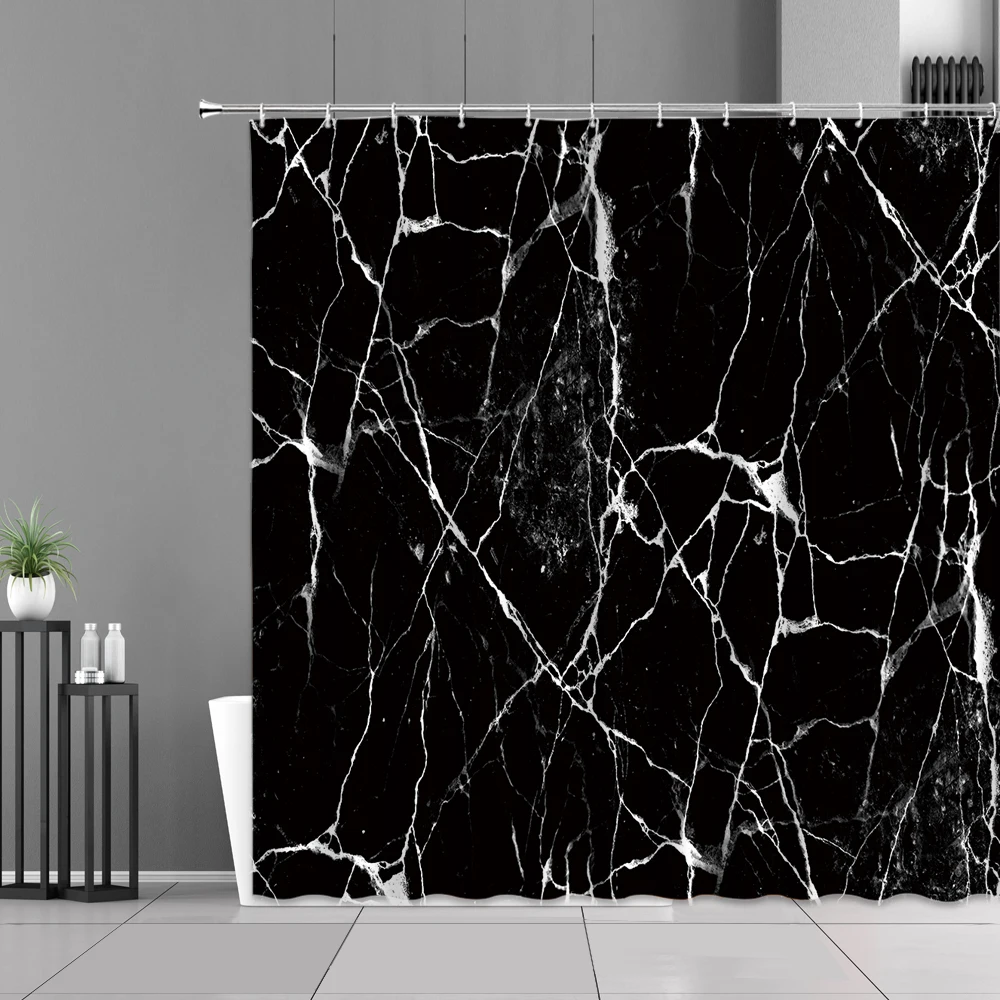 Водонепроницаемая занавеска для душа, Черная Мраморная белая полосатая декоративная Водонепроницаемая Штора для ванной комнаты, в современном стиле, s-образный экран