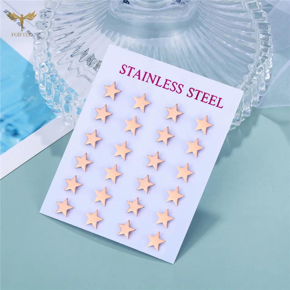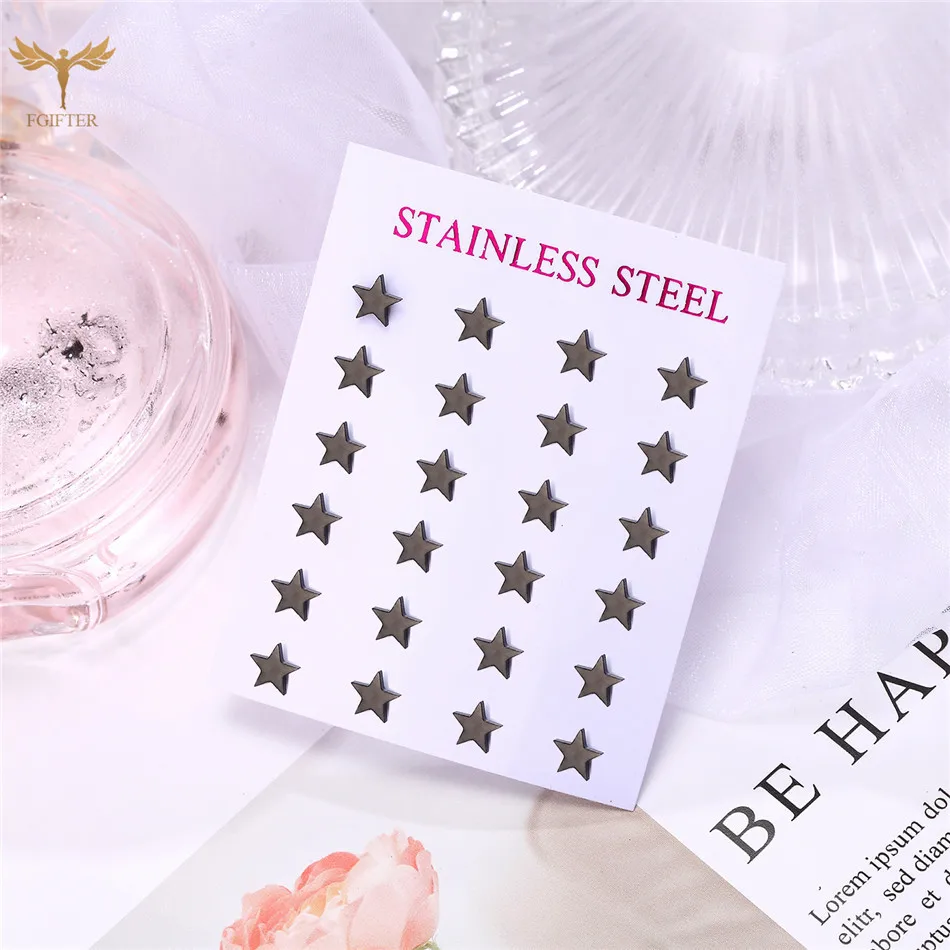 12 пар, женские серьги-гвоздики из нержавеющей стали