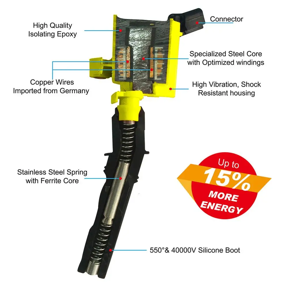 Прямая замена штепсельной вилки для катушки OEM, имеет высококлассную силиконовую магнитную сталь, а также немецкую медную проволоку и высокотемпературную эпоксидную. Внутренняя обмотка оптимизирована для более высокой энергии гоночного приложения. Он доставляетНа 15% больше энергии, чем OEM катушка, Передовые технологии бобины увеличили долговечность, все продукты катушки были проверены с наиболее строгой производительностью и экологическим испытанием, сопротивляется ударам и вибрации. Вторичные контакты изготовлены из латуни, Максимальная передача энергии в свечи зажигания. Это набор из восьми (8) совершенно новых, высококачественных медных катушек зажигания с сапогами и пружинами. Пожизненная гарантия+ 100% гарантия соответствия и возврат денег в течение 60 дней.Эти катушки превосходного качества иСертификат ISO9001Для обеспечения качества.Супер высокая di-электрическая производительность эпоксидная & Превосходное качество медная проволока и супер высокая проводящая катушка