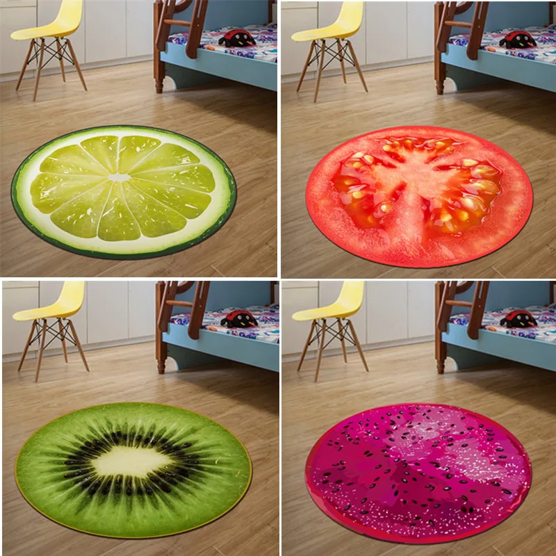 Круглый ковер, мягкие ковры с 3D принтом фруктов, Нескользящие коврики, коврик для компьютерного стула, коврик для киви, арбуза, напольный коврик для детской комнаты, домашний декор