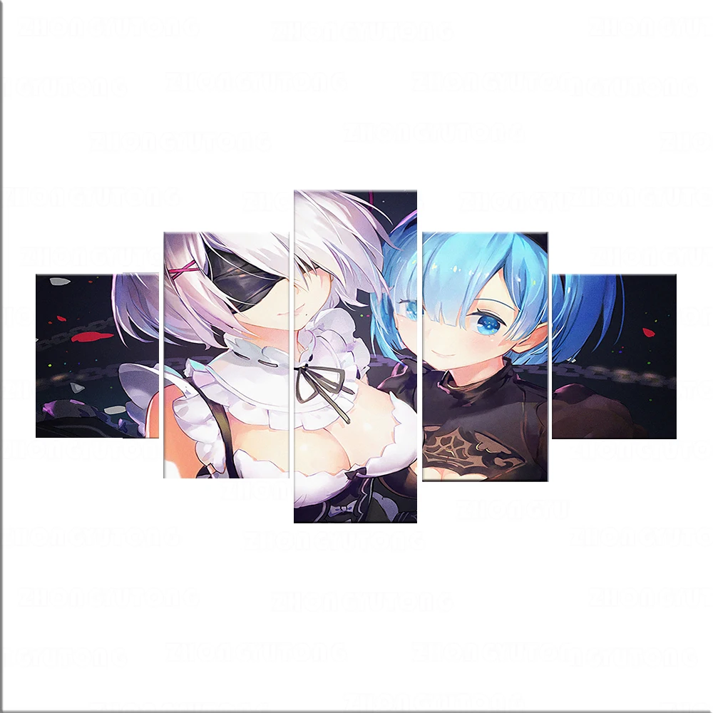 Картины на холсте Rem Re Zero 2b, мультяшный персонаж, настенный плакат, 3 панели, модульные картины, гостиная, Современный домашний декор