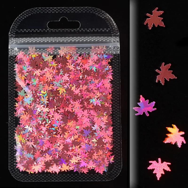 2 г Блестки для нейл Арта (искусство украшения ногтей) для ногтей кленовые украшения листья лазерные золотые голографические блестящие принадлежности для ногтей для профессионалов