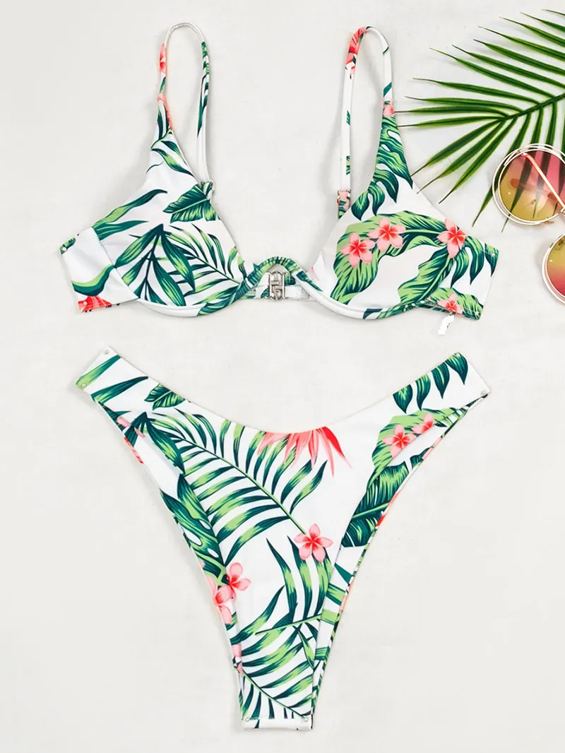 Zrtak, пуш-ап, бикини, Для женщин купальник женский пляжный бандажный Купальник летняя лиственным принтом купальные костюмы V Форма провода наборы для ухода за кожей