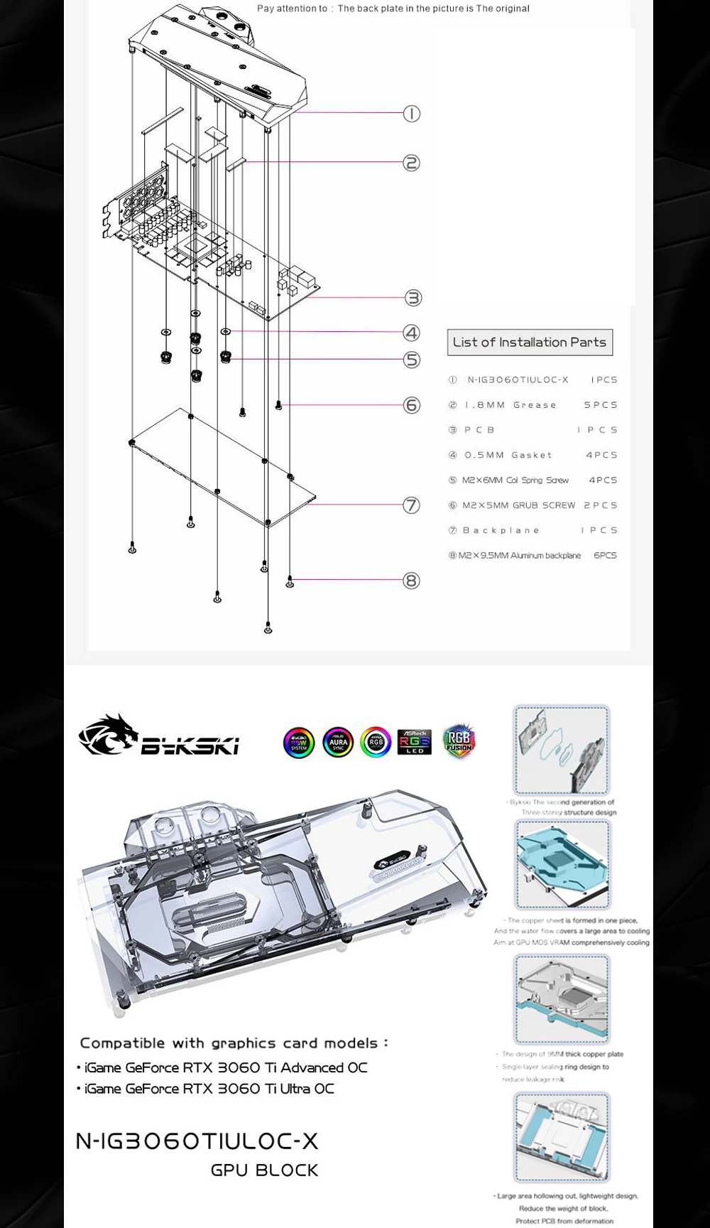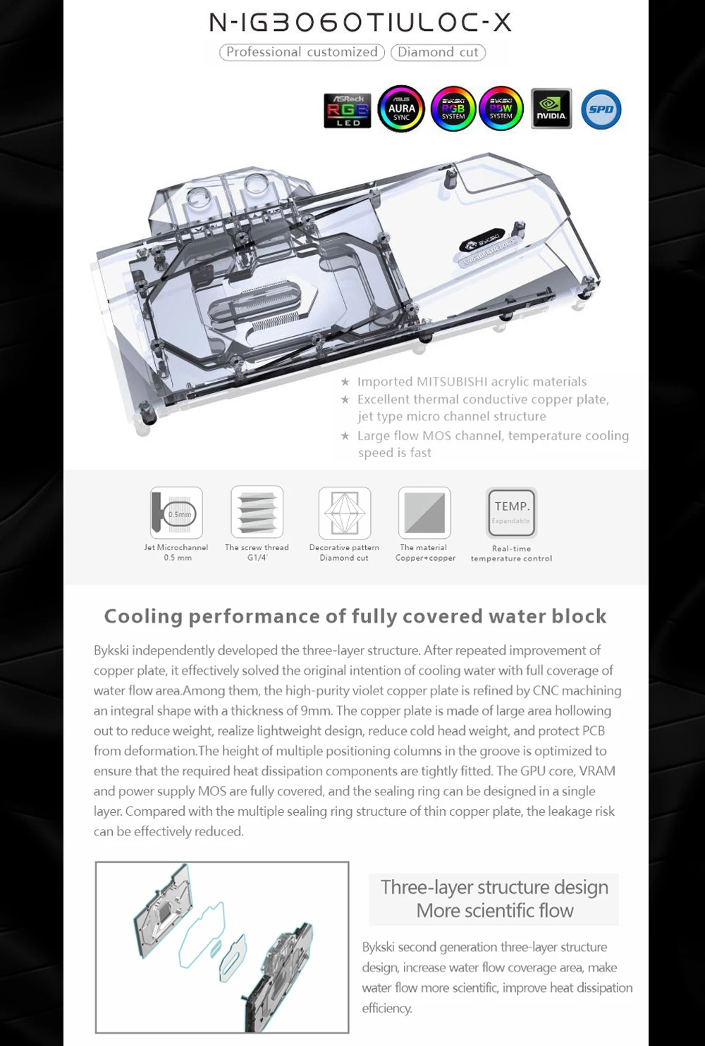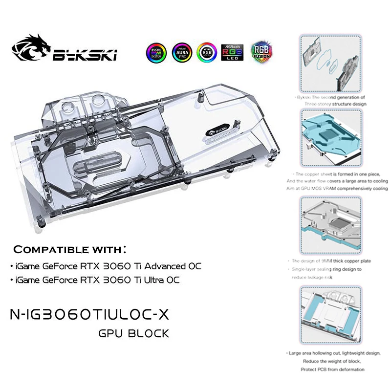 Bykski N-IG3060TIULOC-X, водяной блок GPU для красочных видеокарт iGame RTX 3060Ti Advanced Ultra OC, Радиатор VGA, охлаждение ПК RGB