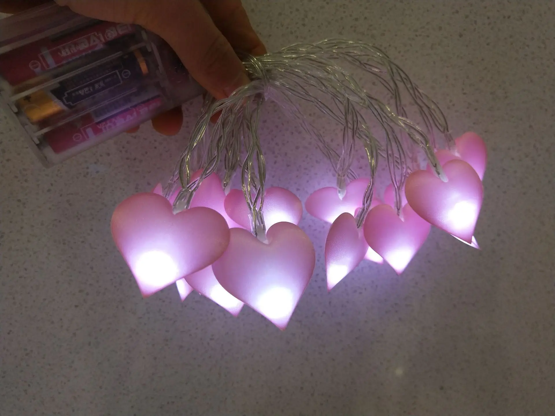 Корейский стиль, тканевый персиковый сердечко, Любовный светильник, гирлянда для свадьбы, рождественской вечеринки, украшения для комнаты, батарея, мощная любовь, светодиодная гирлянда