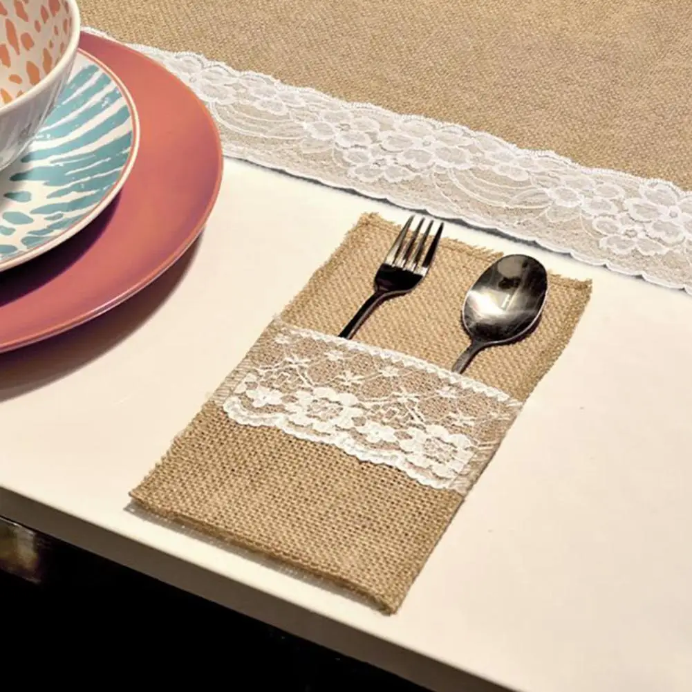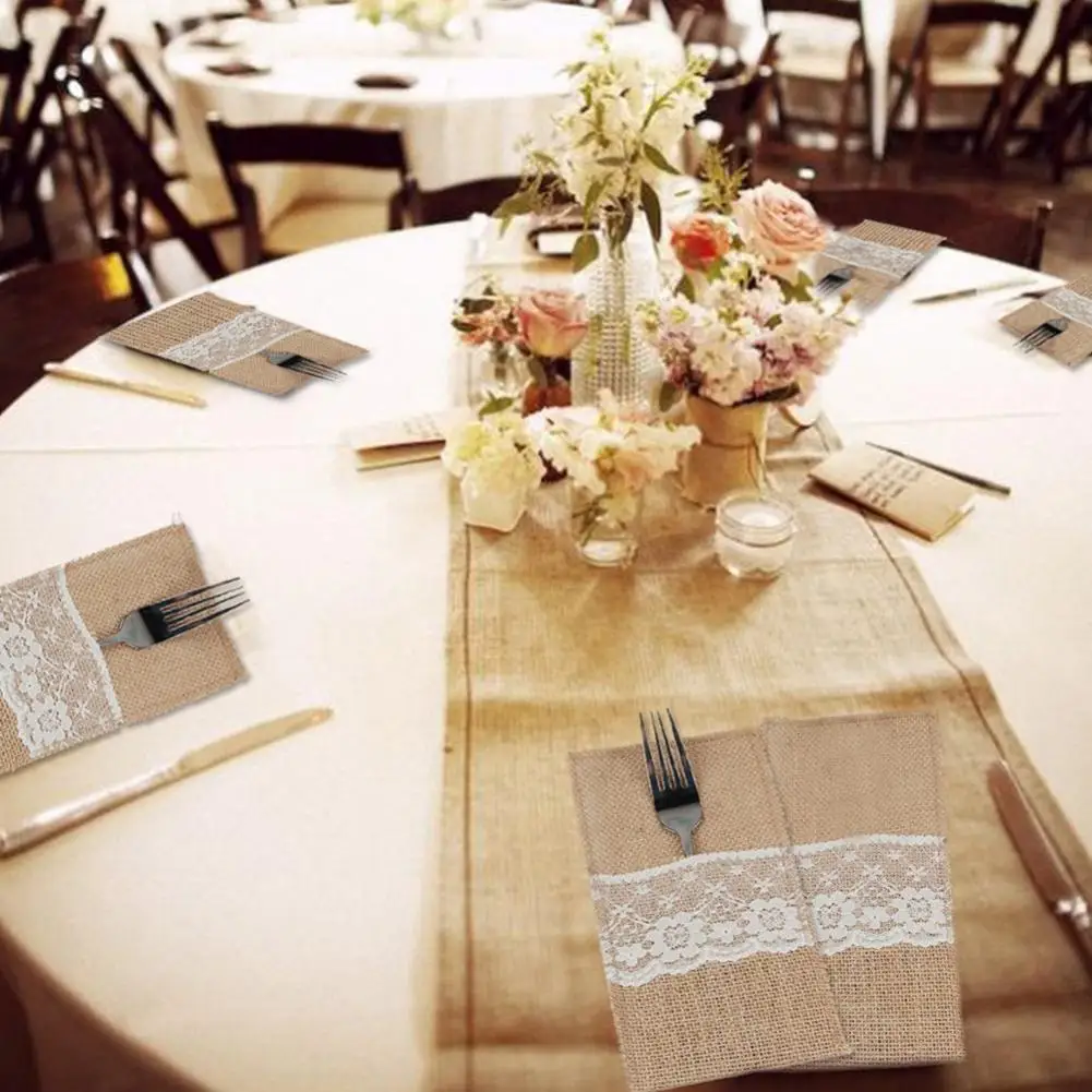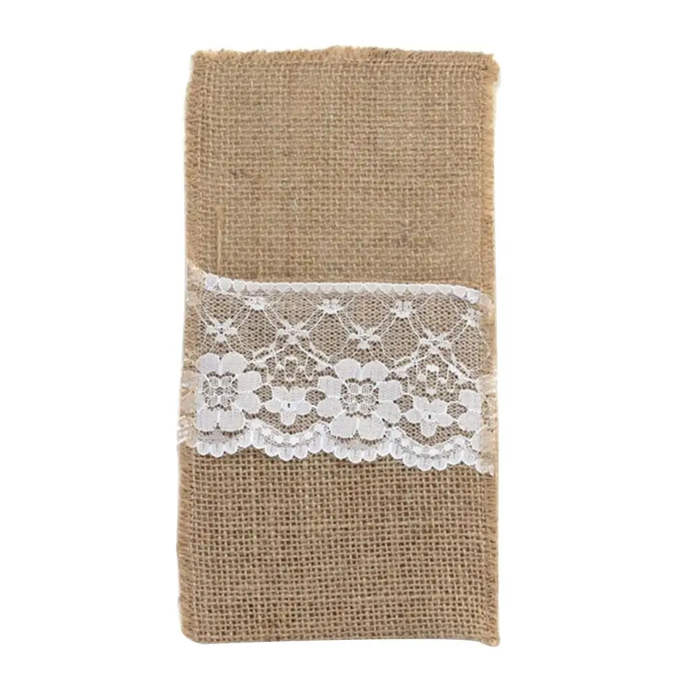 50 шт. в декорированном мешковиной горшке кружевной мешочек для столовых приборов рустикальная свадьба посуда держатель для вилки, ножа сумка гессенской из натурального джута украшение стола аксессуары для дома