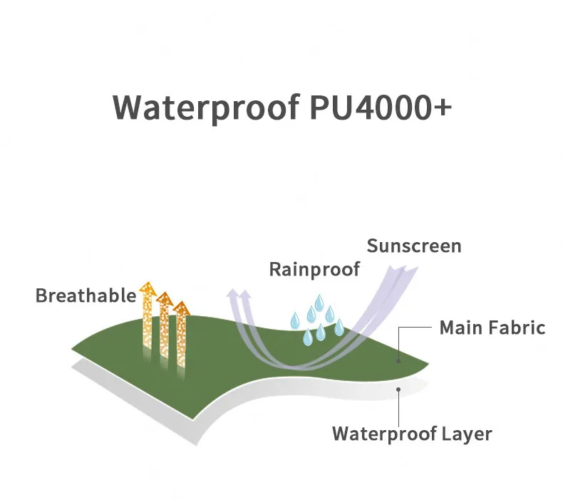 Внешняя палатка: 20D нейлоновая клетка (с силиконовым покрытием)/Водонепроницаемая 4000 мм