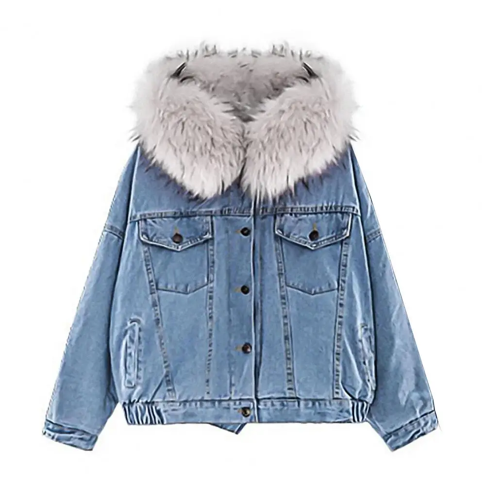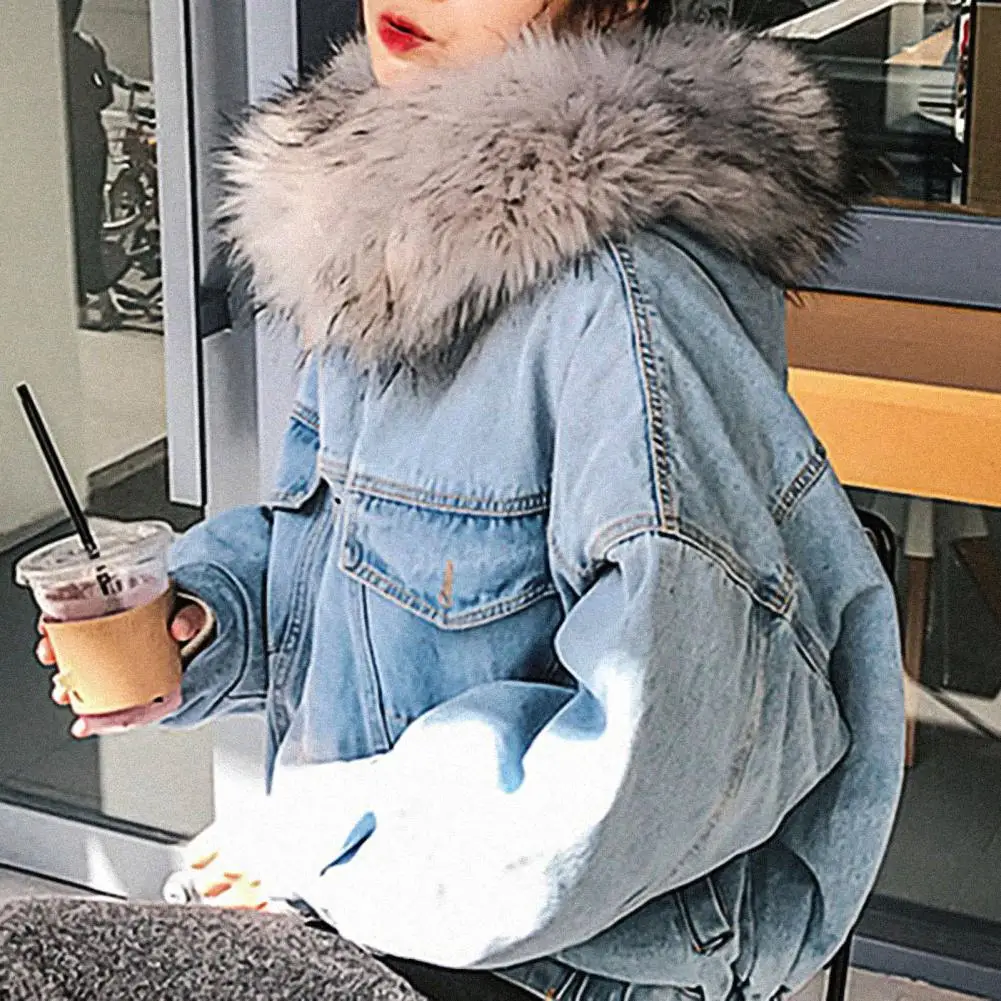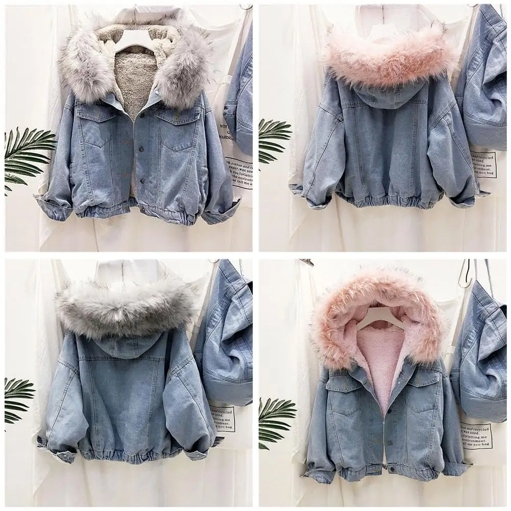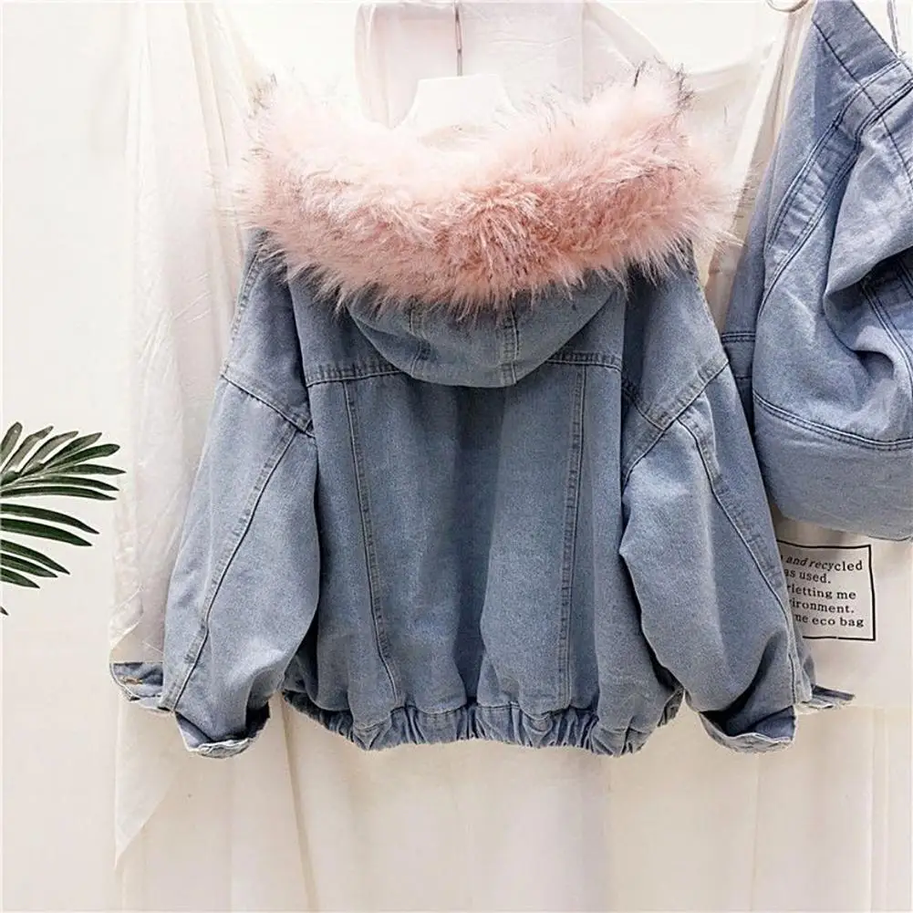 Женская джинсовая куртка на искусственном меху, с капюшоном