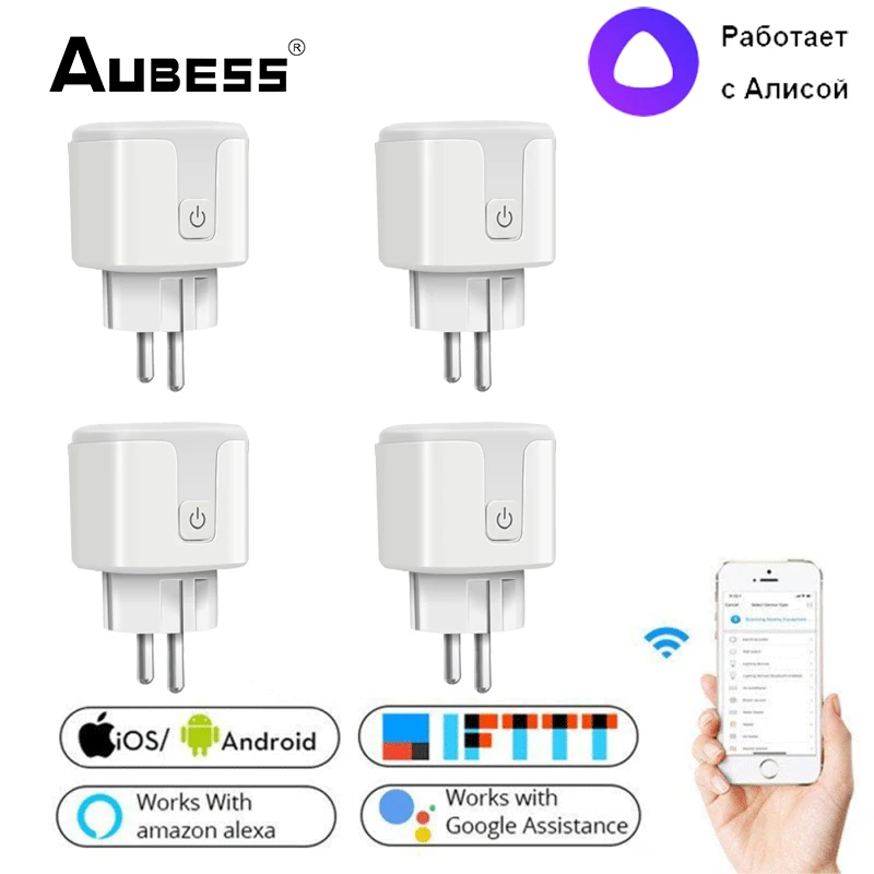 Смарт-розетка Aubess Tuya с поддержкой Wi-Fi, 16 А, 110-220 В, 4 шт.