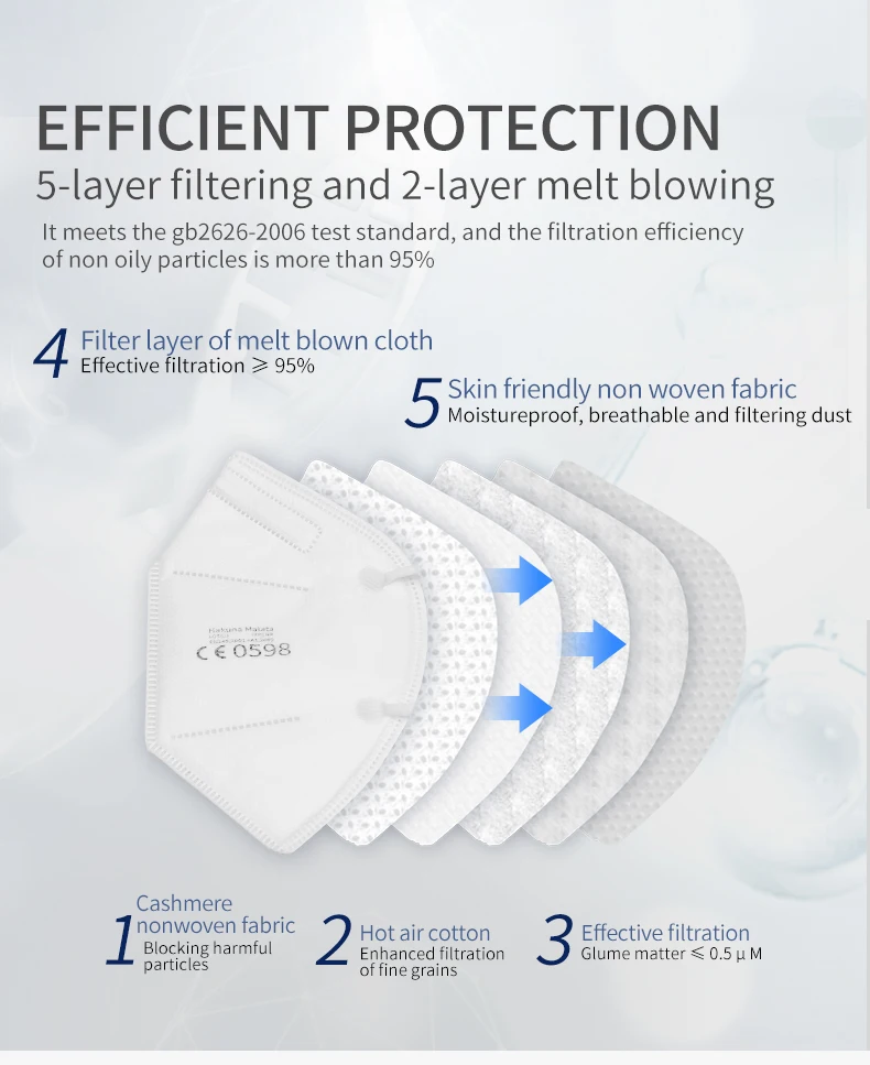 Маска KN95, маска KN95, 5 слоев, для лица, рта, фильтрация 95%, FFP...