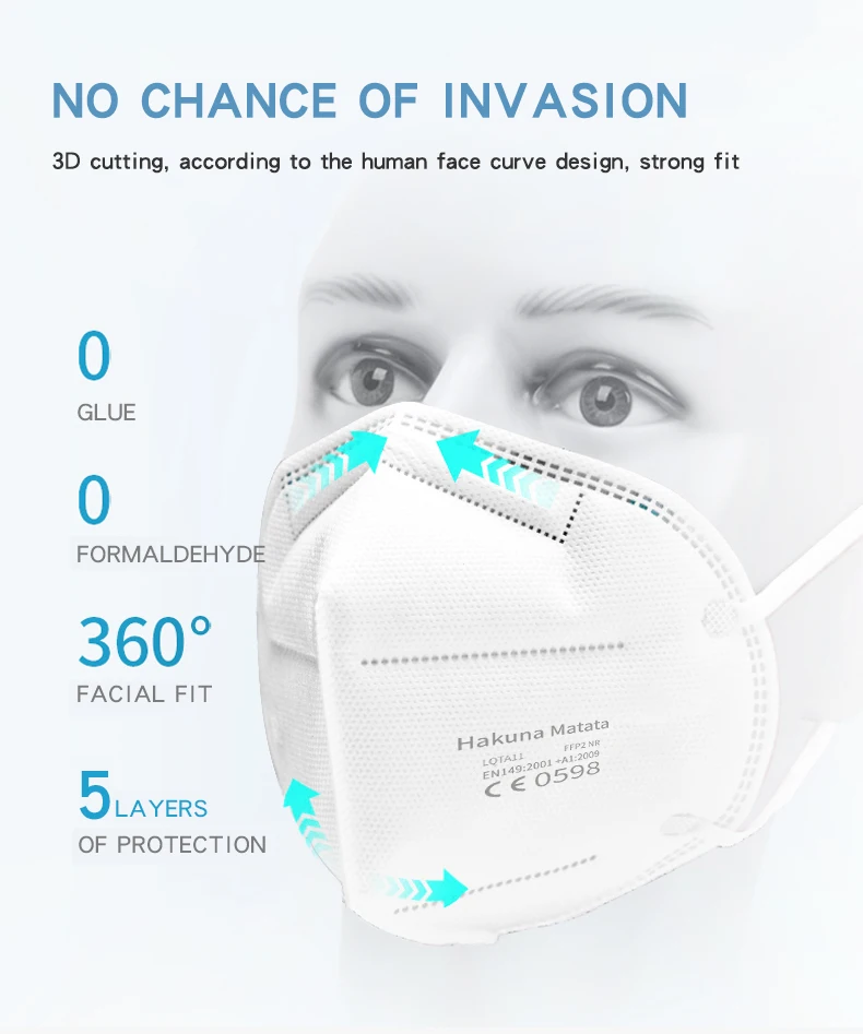 FFP2 маска для лица, 5-слойная маска KN95 для рта, CE, противопылев...