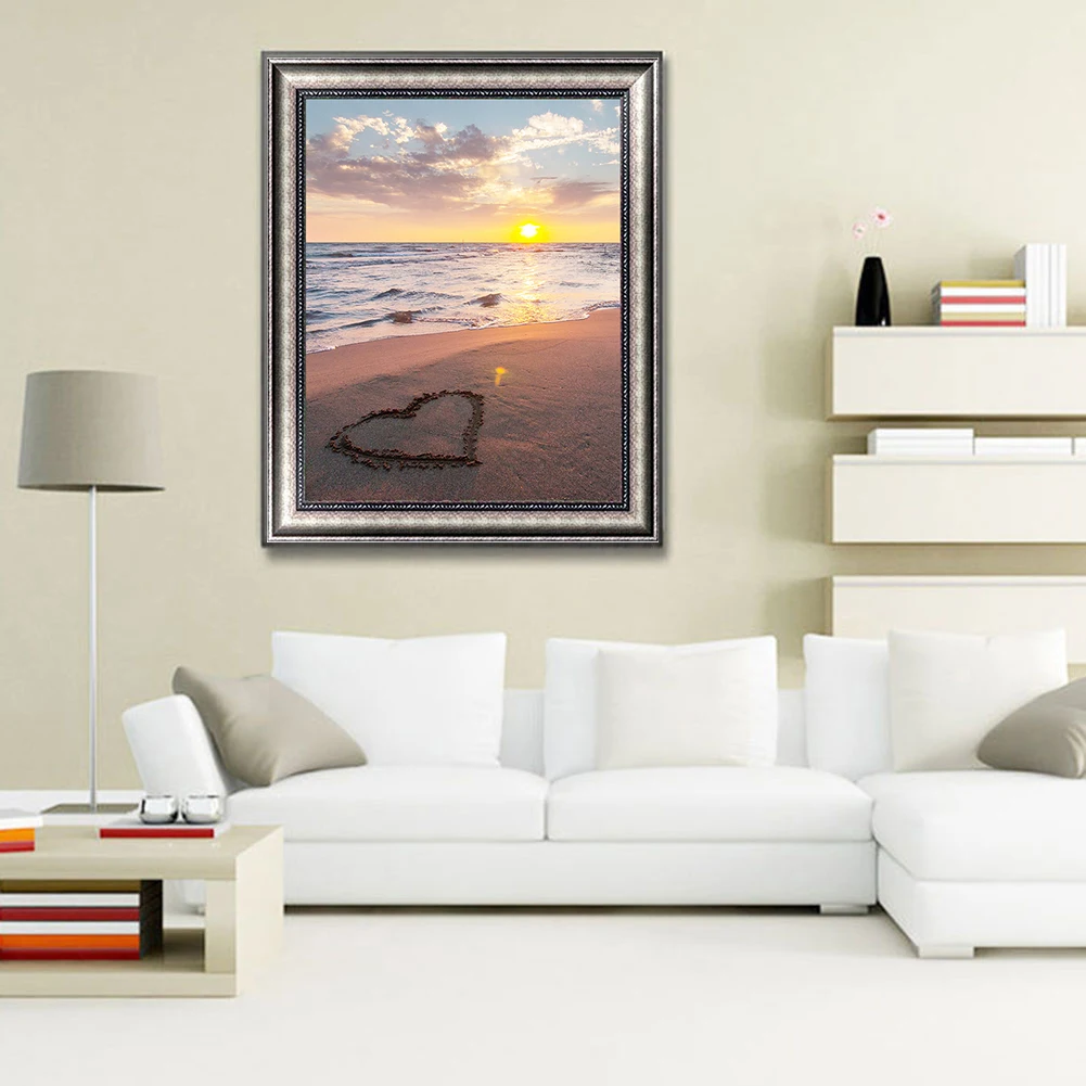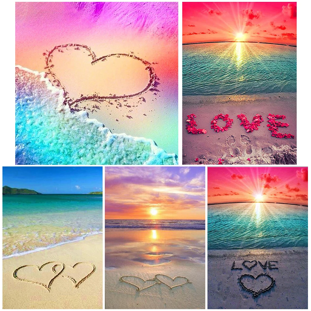 Алмазная живопись сделай сам в форме сердца, полный набор для вышивки крестиком, вышивка пляжным ландшафтом, семейный Декор