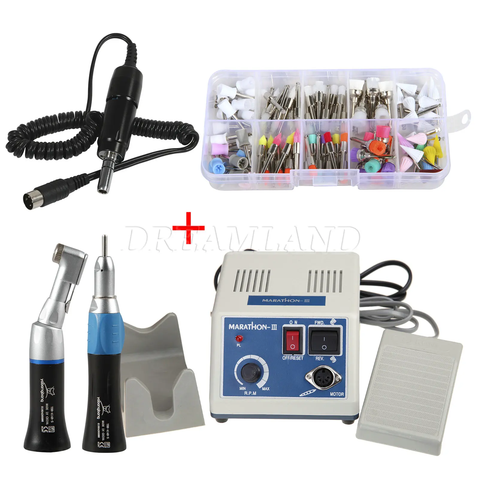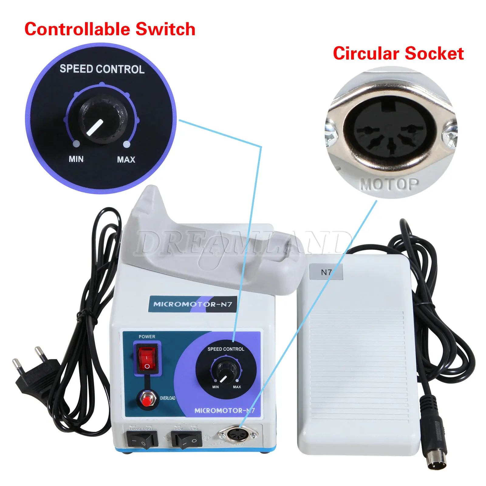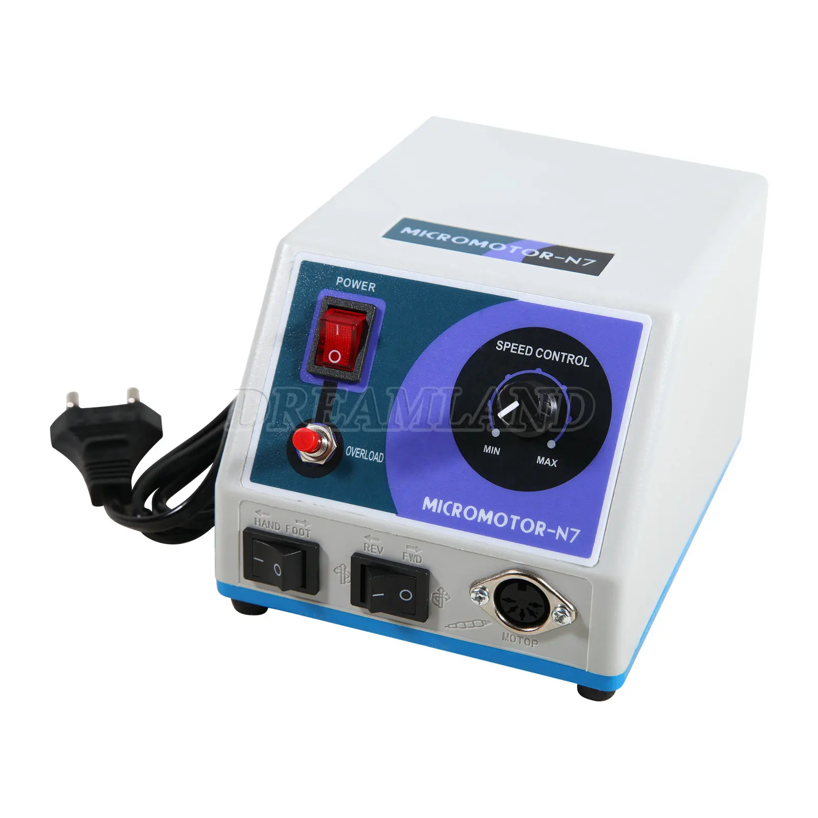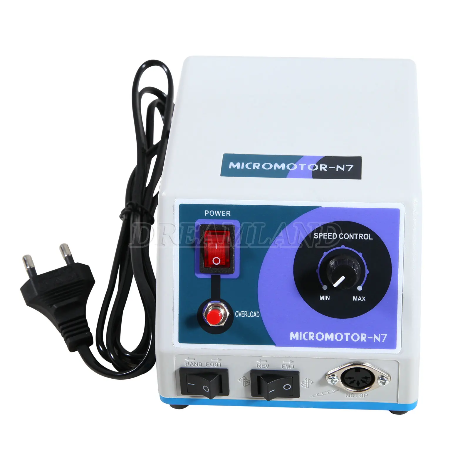 Micro motor marathon machine N7-это инструмент, изготовленный с двигателем для использования как карандаш и используемый для работы с поворотным усилием от вращающегося двигателя до 35000 об/мин. И применяется для резки, шлифования, полировки. Доступны различные боры в зависимости от материала и способа работы. Продукты в основном используются для стоматологической лаборатории и стоматологической клинике. Диапазон использования был постепенно расширен для ювелирных изделий, ногтей, гравировки, ортопедии, промышленного рынка, красоты резьбы по дереву, яйцаОсобенности:Компактный блок управленияОчень мощный и качественный 0-35000 об/минНеступенчатая система скорости (она хорошо разработана для вывода от нуля до 35000 об/мин с помощью неступенчатой системы скорости)Возможность поворота вправо и влевоНожная система включения/выключения (педаль с переменной системой управления)Новая система контроля скорости;Два вида способов контроля скорости.Технические данные:Диапазон скорости 0-35000 R.P.MНапряжение220V/50Hz ± 10%110 В/60 Гц ± 10%Масса: 2 кгЭлектрический Микро Мотор:Напряжение: 30 В постоянного токаСкорость: 0-35000 об/минСертификация CEПортативный дизайнУстановлены специальные шариковые подшипники для супер высокой скорости (не нужно добавлять масло)E-тип подключения двигателя к прямой и угловой наконечнику