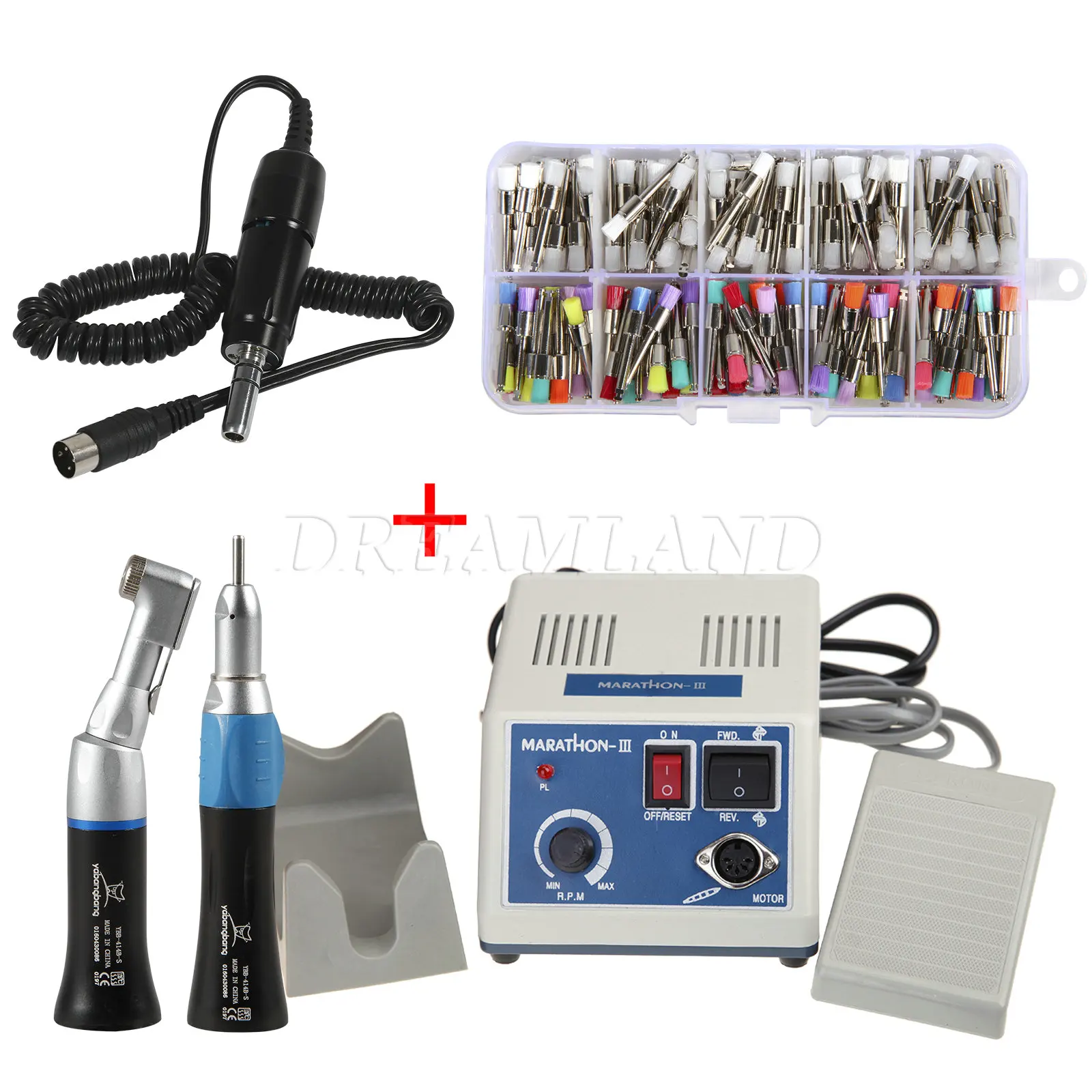 Аппарат для полировки Dental Lab микромотор Marathon N7 + электродвигатель E-типа + наконечник прямойконтра + щетка для полировкичашки Смешанные черные