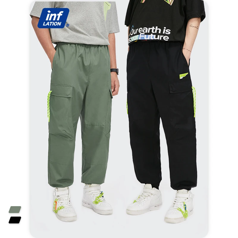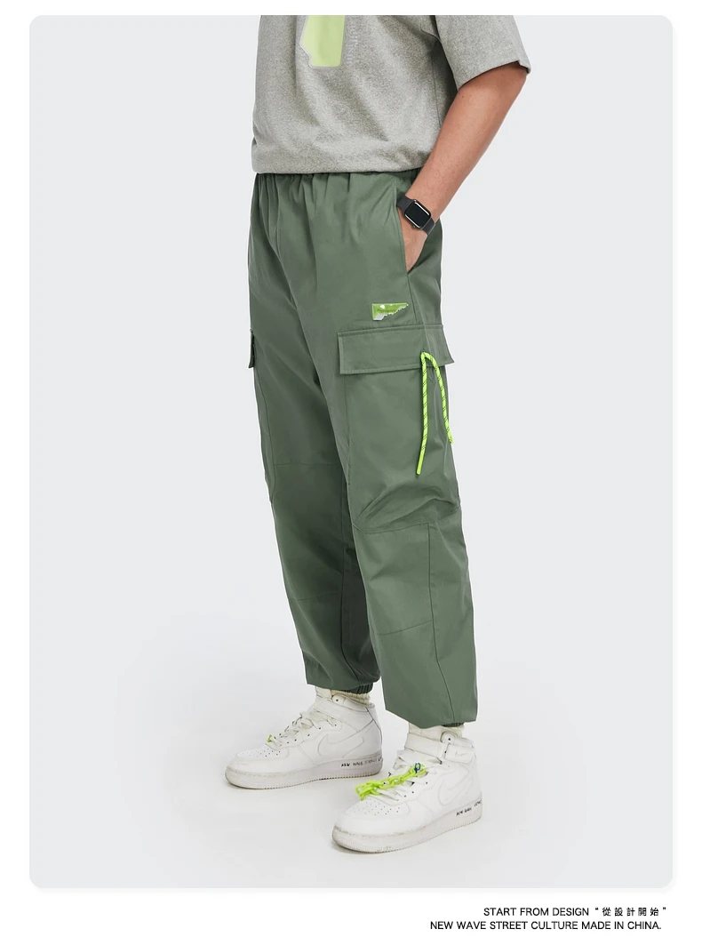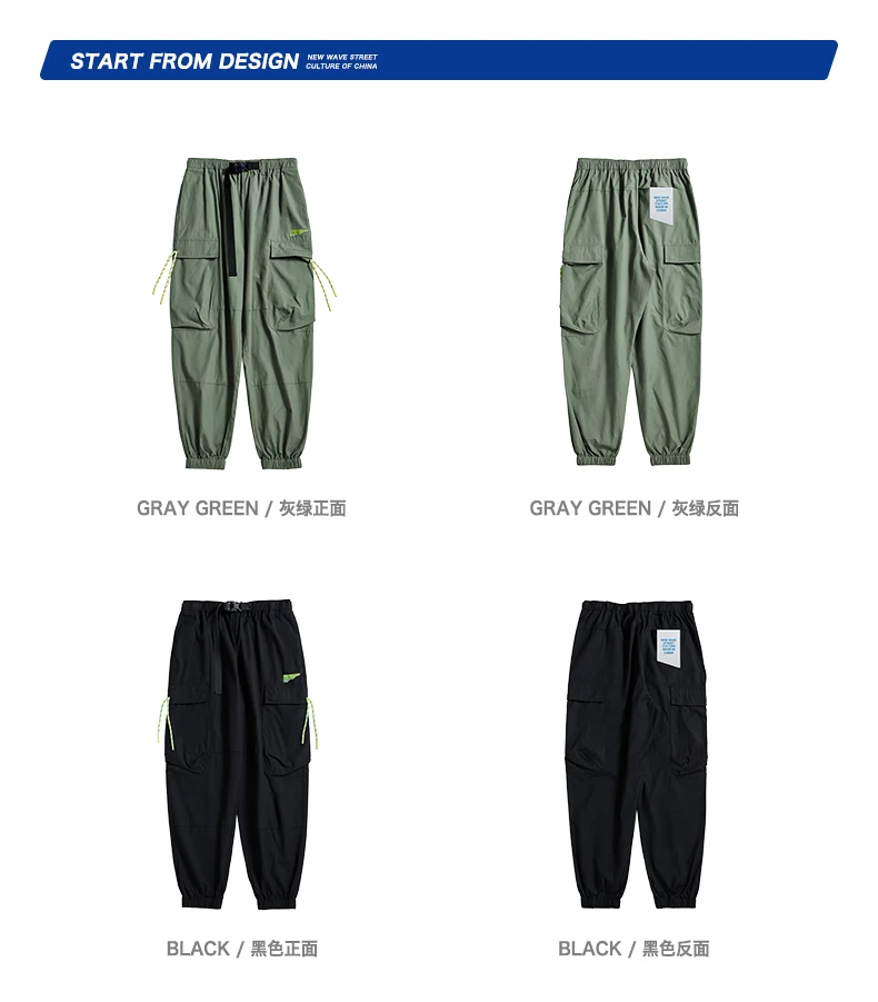 Мужские джоггеры с эластичным поясом, повседневные штаны в стиле Харадзюку, с поясом, много карманов, стиль хип-хоп, 3605S21, весна 2021