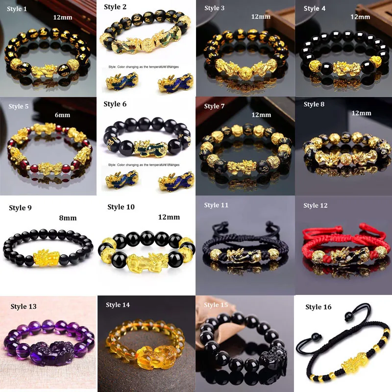 Браслет из китайских каменных бусин по феншуй пиксиу, обсидиан, меняющий цвет, для богатства, браслет, приносящий удачу, для женщин, мужчин, унисекс