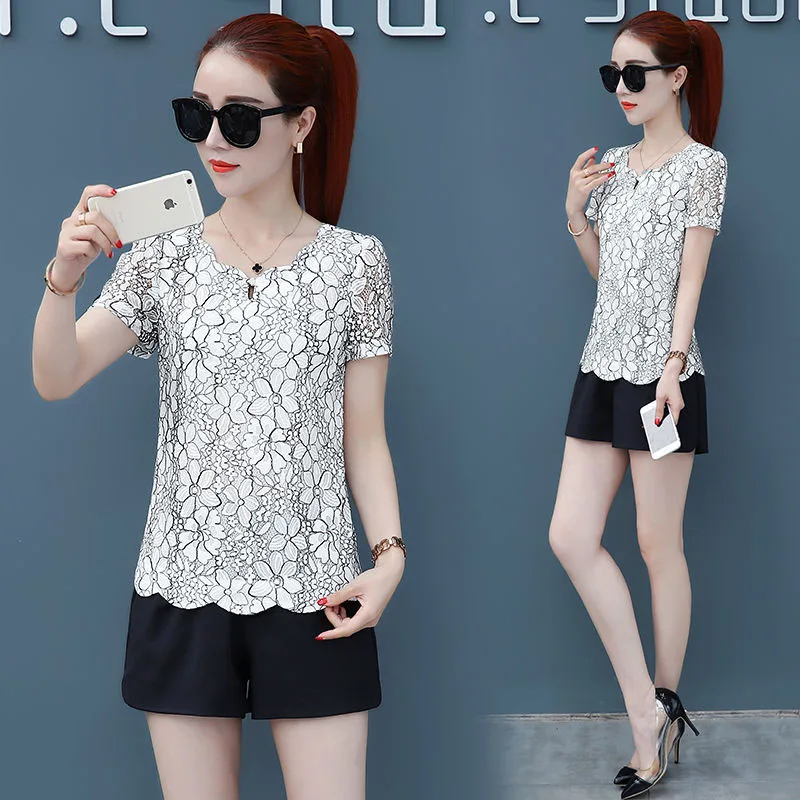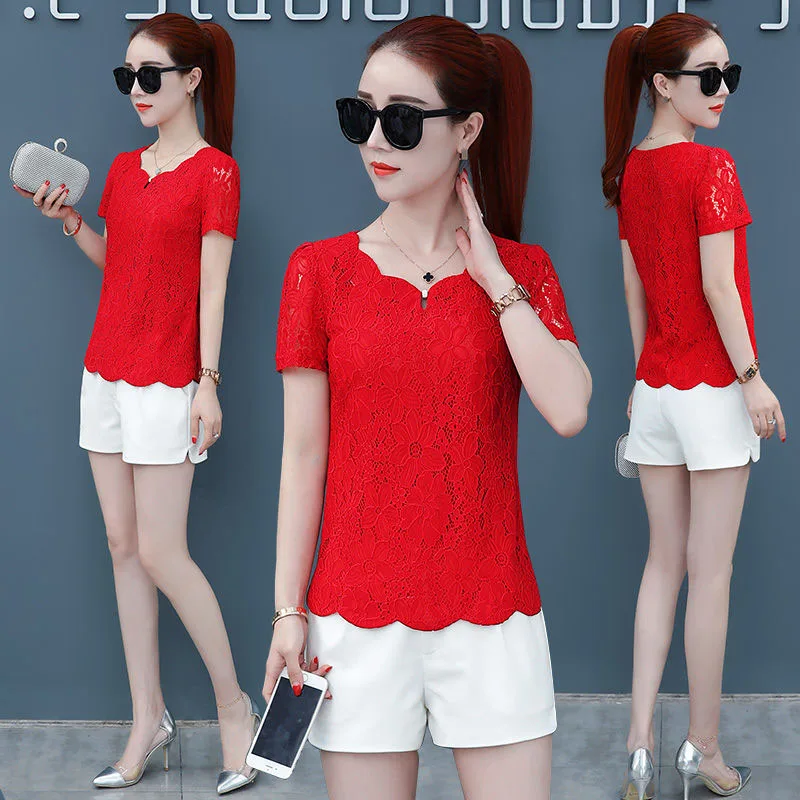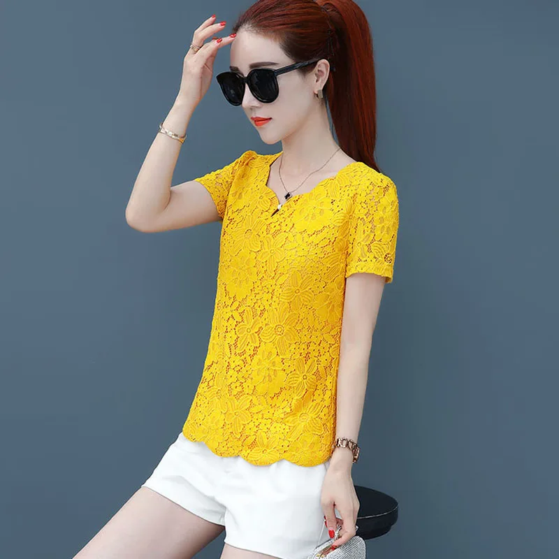 Женская блузка с коротким рукавом, желтая кружевная блузка, большие размеры 3XL, весна-лето 2021