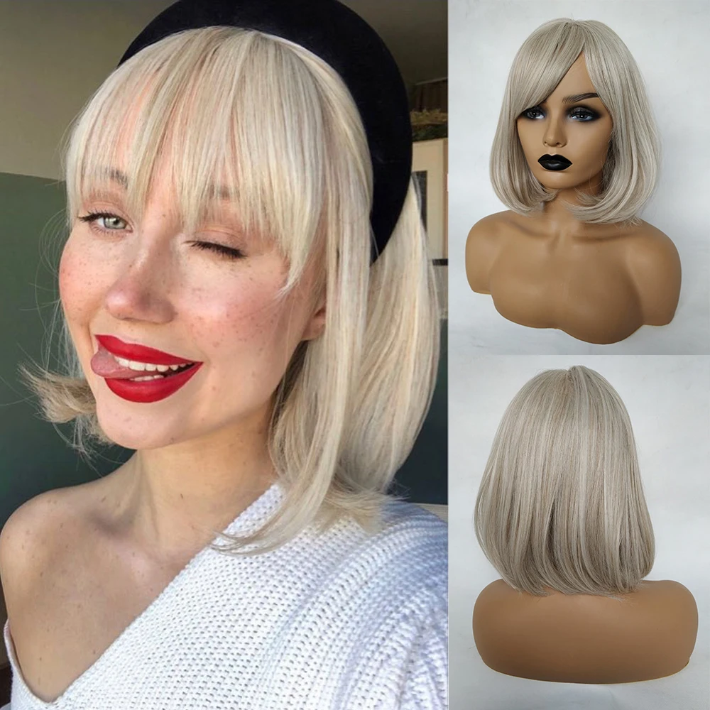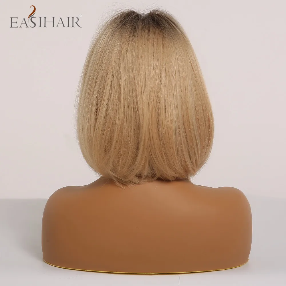 EASIHAIR короткий Боб смешанный Золотой Блонд Выделите синтетические парики с челкой термостойкие косплей шейкер волосы для черных женщин