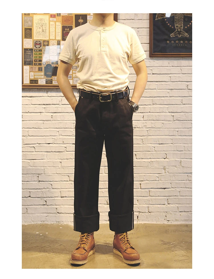 Женские винтажные брюки, стильные брюки цвета индиго, 14 унций, муж...