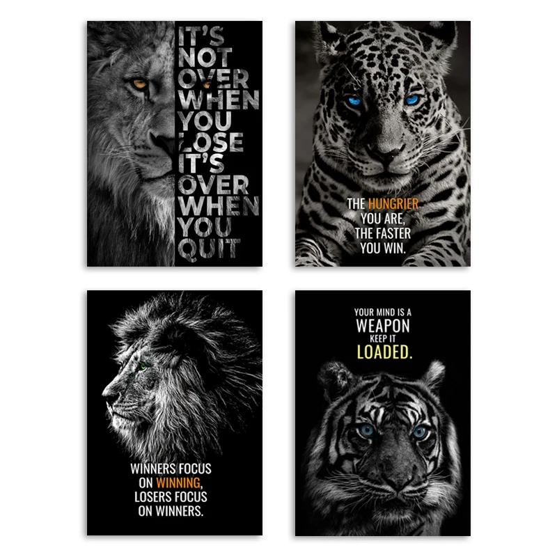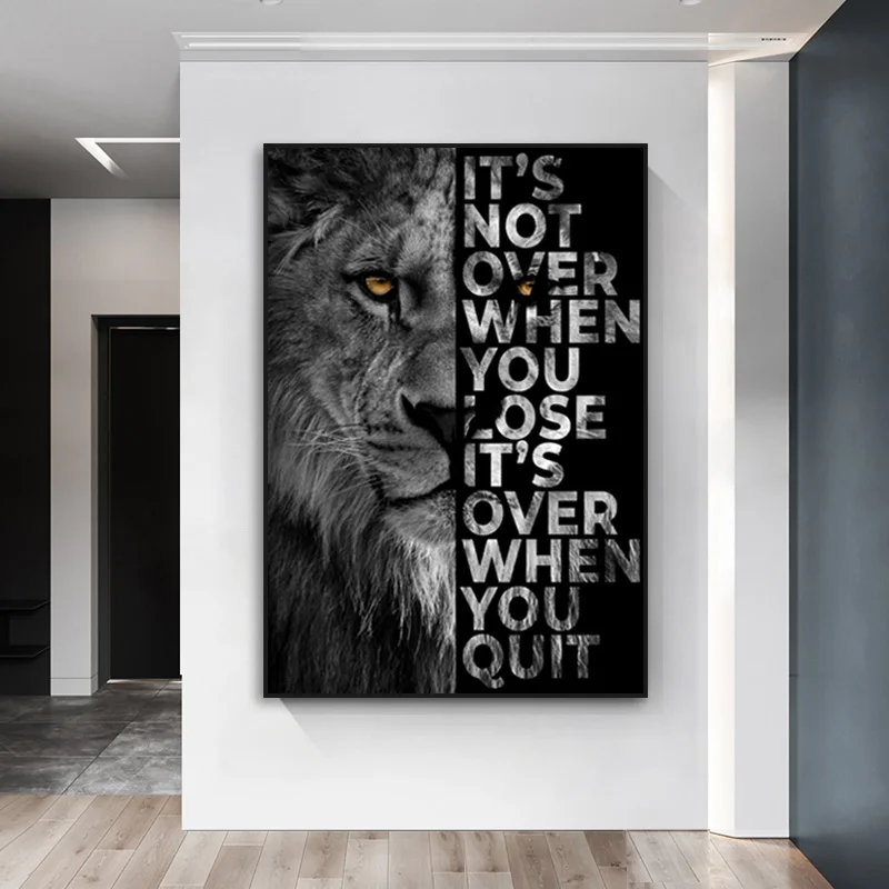 Большой размер, тигр, Лев, буква, мотивирующая цитата, искусство на стену, холст, живопись, офис, домашний декор, картина