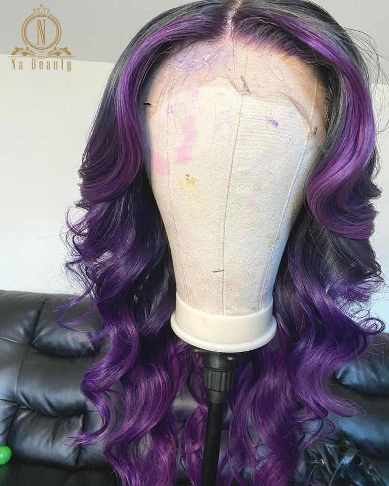 Фиолетовый цвет парик Волнистые HD прозрачные кружевные передние человеческие волосы парики предварительно выщипанные кружевные парики для черных женщин Remy Na Beauty