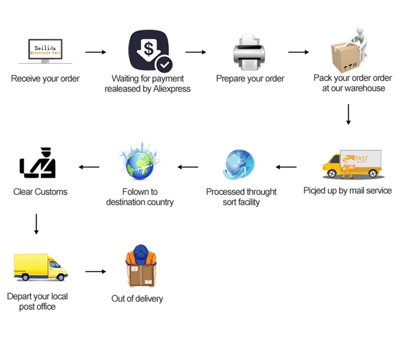 1. Ваша посылка будет отправлена в течение 3 рабочих дней после оплаты заказа. 2. Перед оплатой вы можете выбрать способ доставки. Если вы хотите использовать другой способ доставки, вы можете связаться с нами. 3. Если вы не получили свою посылку, вы можете связаться с нами, мы Отследим ее и продлим время защиты. 4. Стоимость доставки не включает налоги на импорт, и покупатели несут ответственность за таможенные пошлины.