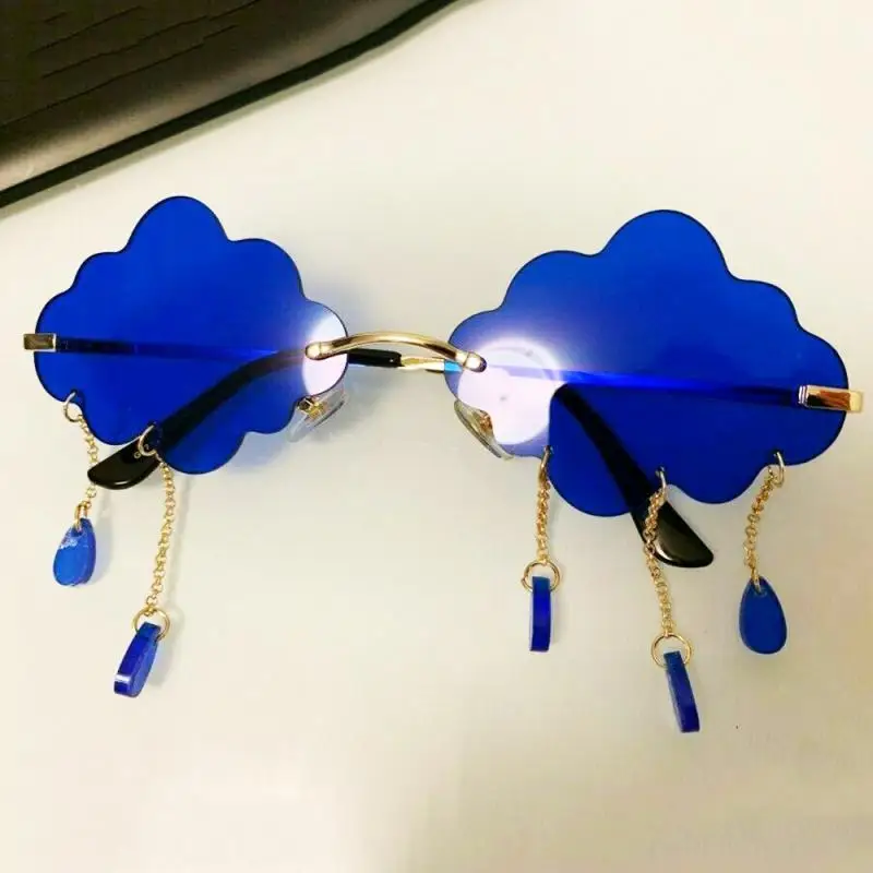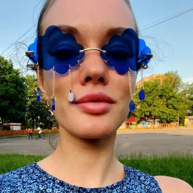 Очки солнцезащитные женские, без оправы, с кисточками, подвеска с молнией, "прозрачный океан"