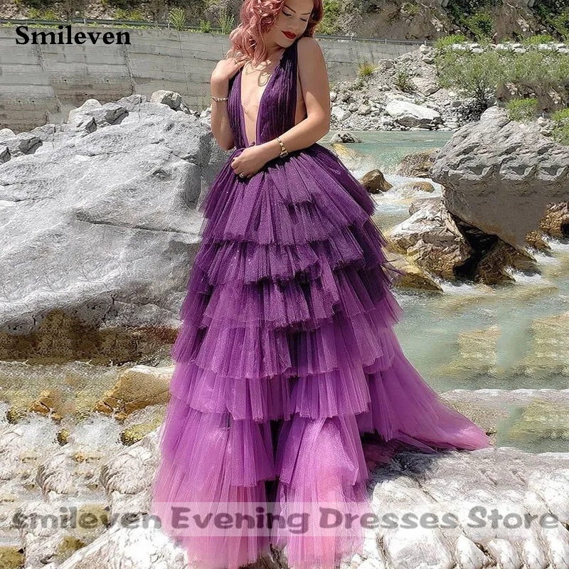 Длинное бальное платье Smileven, пышная ярусная тюль, с глубоким V-...