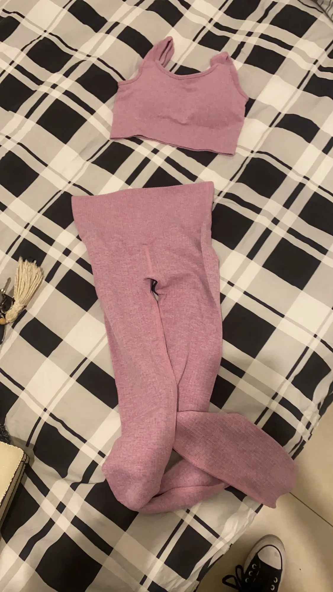 Очень классный спортивный костюм, заказал комплект из топа и штанов. Я получил L и не терял, потому что весь Топ сидит идеально, пришел товар через две недели, отслеживал, когда я прибыл в страну. Быстрая доставка. Костюм был хорошо упакован, и продавец был молодой подарком-эластичной лентой для волос.
