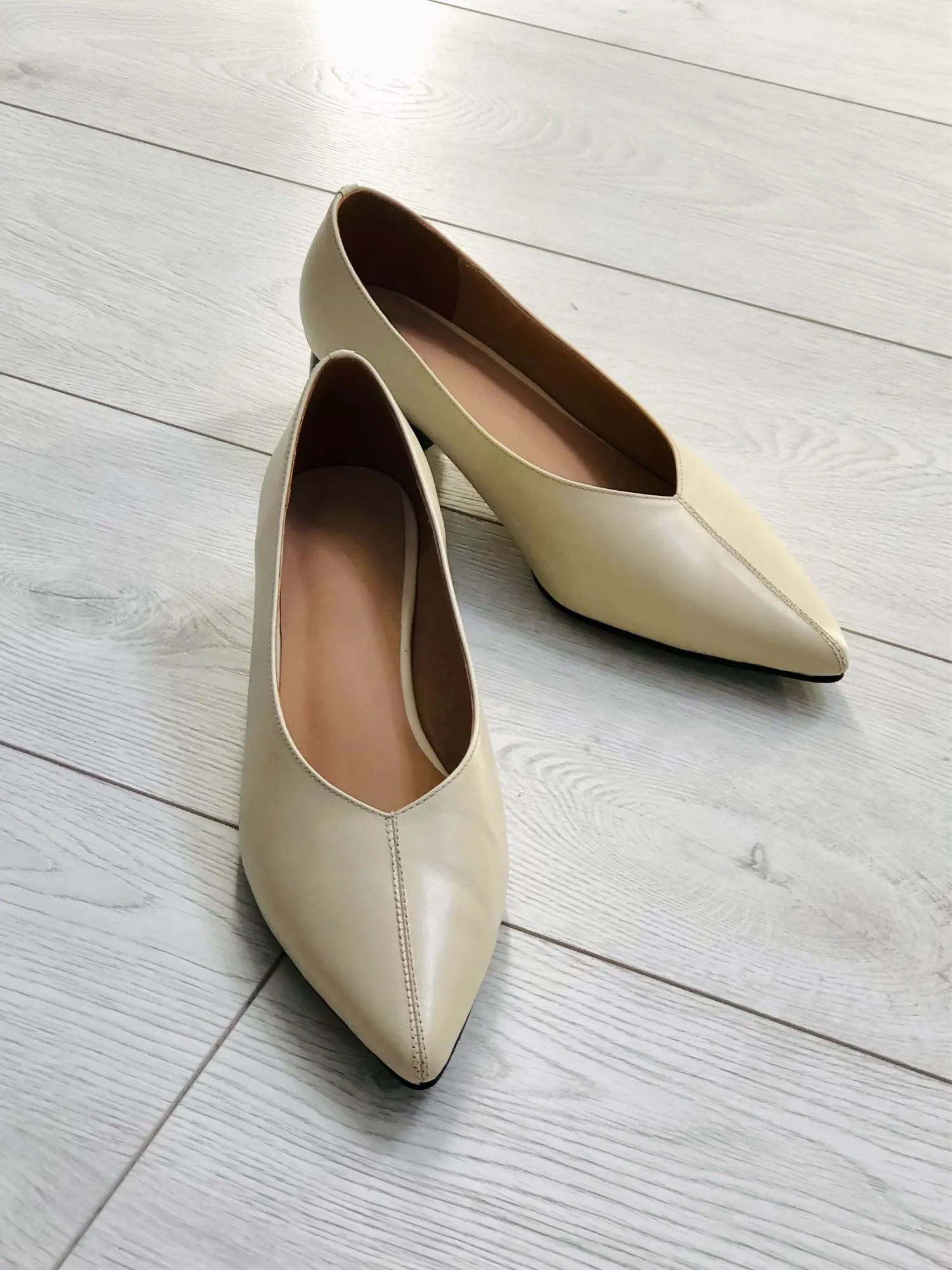Туфли лодочки. Материал: мягкая, натуральная кожа. Классический дизайн, на ножке смотрятся изящно. Каблучок устойчивый и удобный. Доставка около 2-х недель. На весну прекрасный вариант. На Российский 38 размер, стопа 24,5 см. взяла 39 размер, подходит отлично. Как я заметила таблица всегда одинаковая. Мой цвет бежевый с тёмным каблуком, очень универсальный. У прода есть еще черные с голубым каблуком и синие с жёлтым. Очень круто выглядят все варианты. Качество отличное, могу смело рекомендовать. Цена очень порадовала.