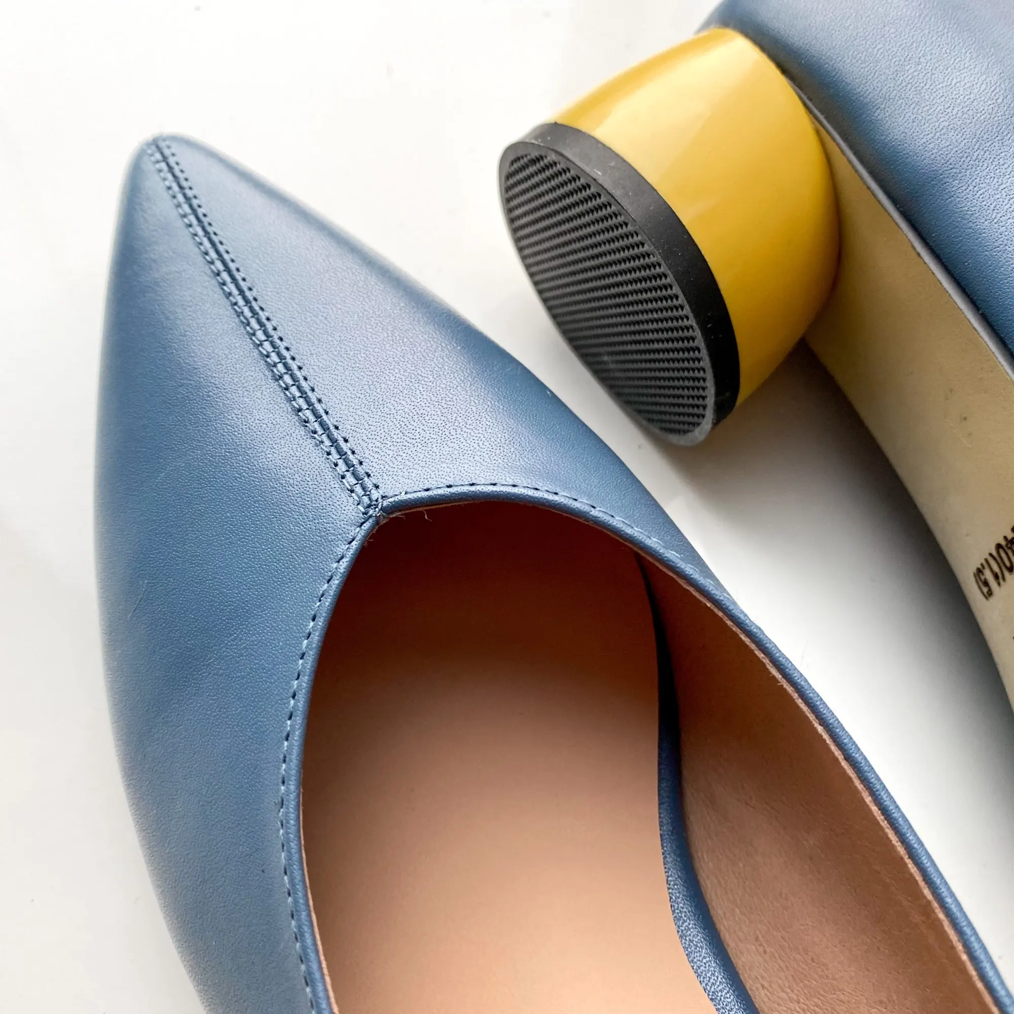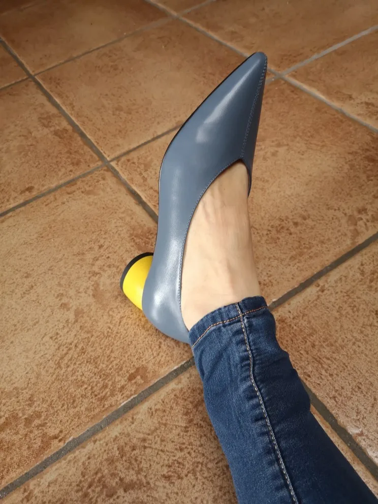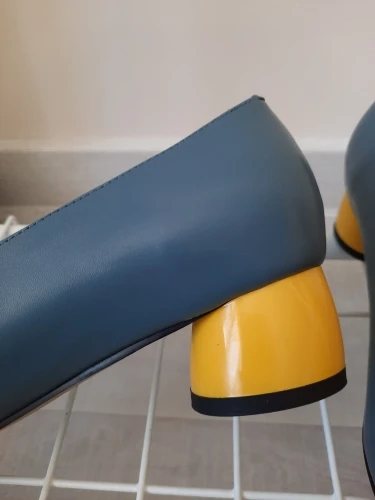 На размер 25 см взяла 40, как беру и всегда. Туфли отлично подошли. Туфли оказались очень лёгкими и удобными, кожа мягкая, не будет натирать мозоли. Каблук невысокий, ощущение будто ты в домашних тапочках. Доставка 2.5 недели, трек отслеживался. Каблук ярко-желтого цвета, круглой формы, ярко контрастирует с основным цветом. Для весны-лета, идеальный вариант
