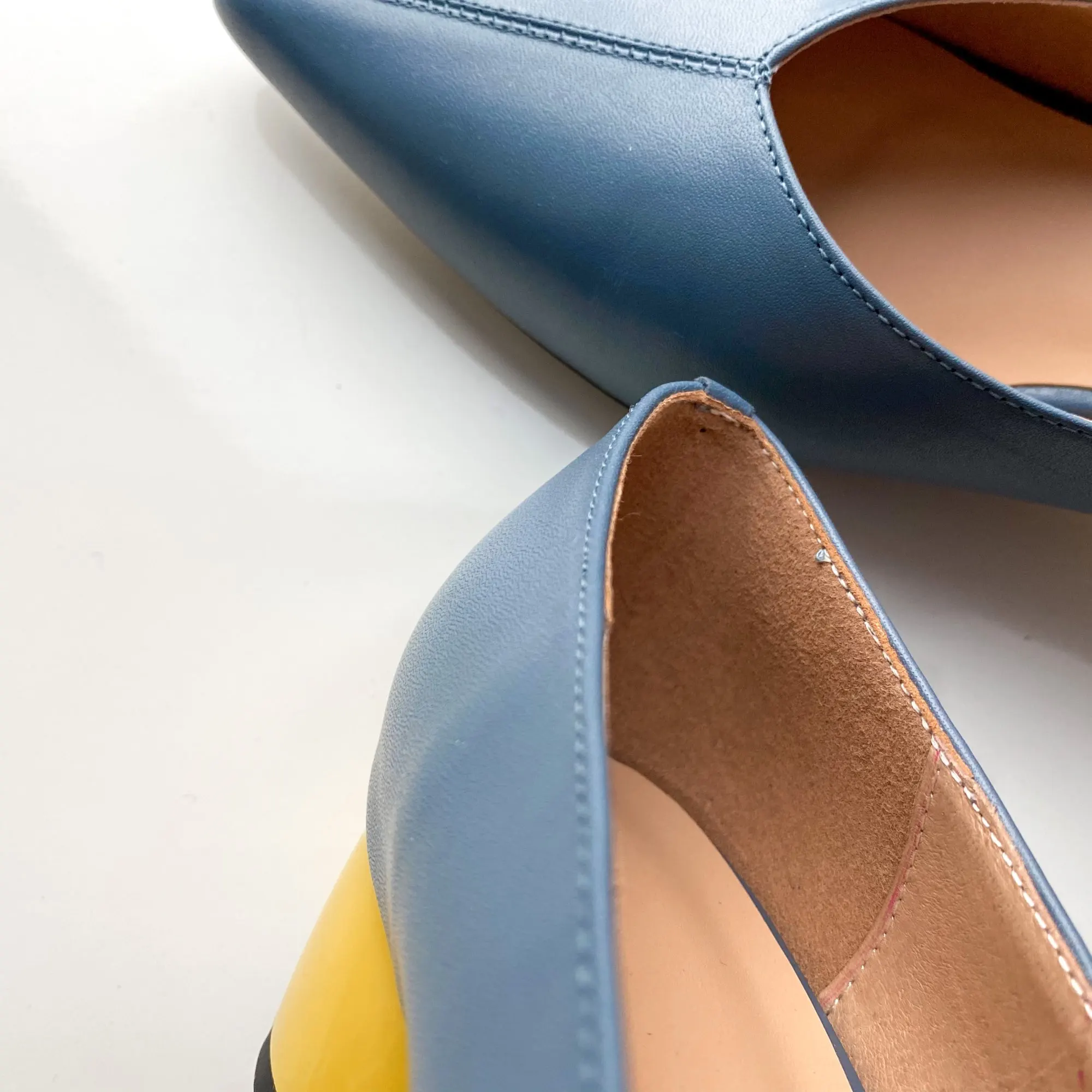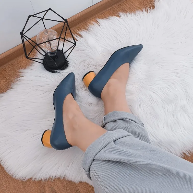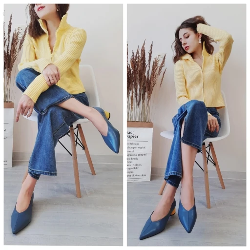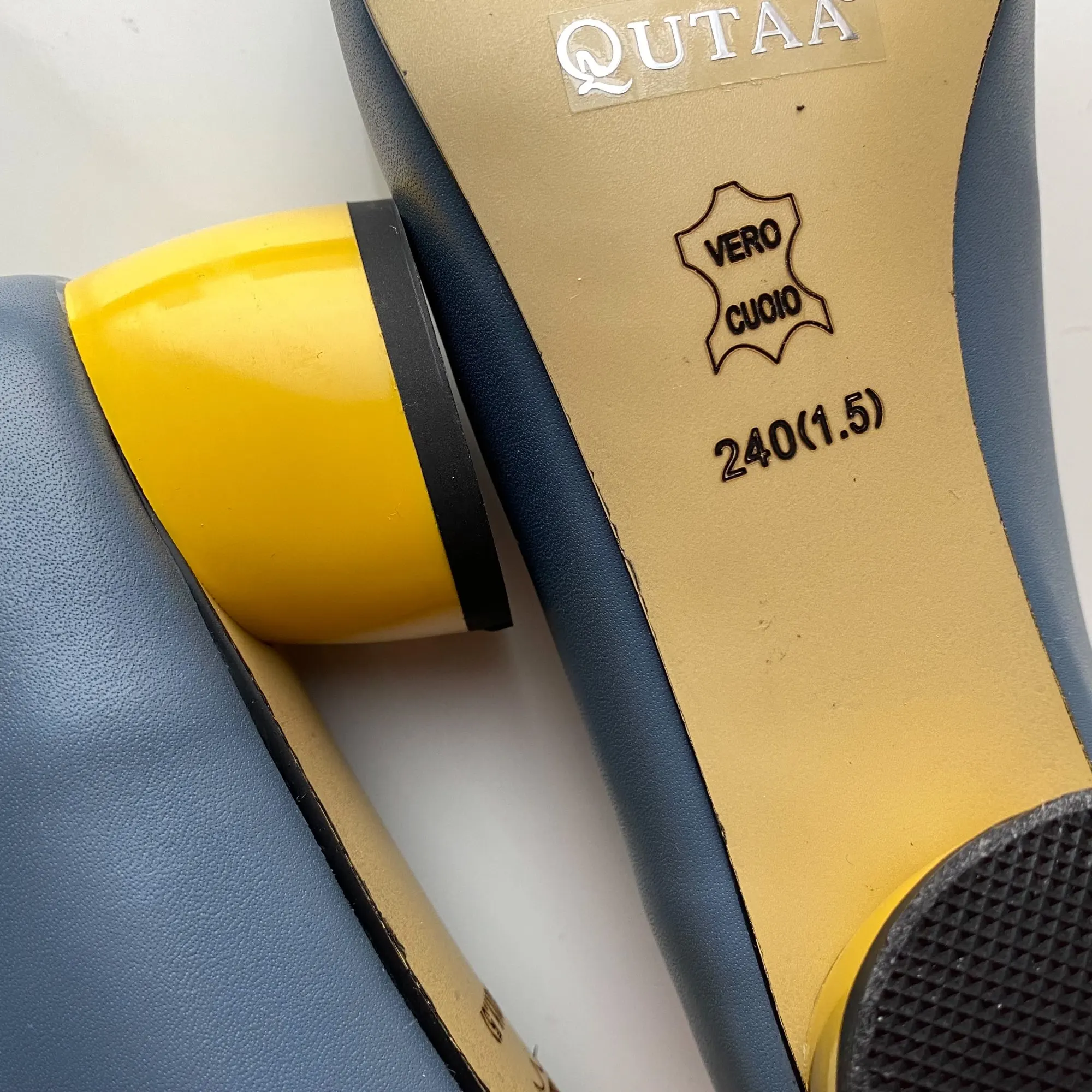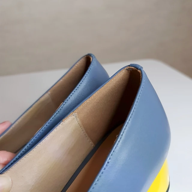 Классные туфельки! Мне безумно нравится их цвет, синий в сочетании с жёлтым каблучком. У меня рост невысокий 159 см. и я переживала, что буду смотреться в таких туфельки как Буратино, но, к моей радости, на ножке они смотрятся красиво. Удиняют ступню, но в меру, адекватно. На 37 размер ноги, по стельке 24 см., я взяла 38 китайский, села она как надо. Туфли не давят, но при этом не спадают. По ширине хорошо, ступня у меня не узкая. Материал - натуральная кожа, как снаружи, так и внутри. По качеству достаточно мягкая, в туфлях комфортно. Пошив качественный, строчка ровная, нет ни одного нюанса. Каблук устойчивый, крепкий. Находка рифленая, скользить не будет. Туфельки классные, стоят своих денег! Я заплатила 41$ и довольна покупкой полностью!