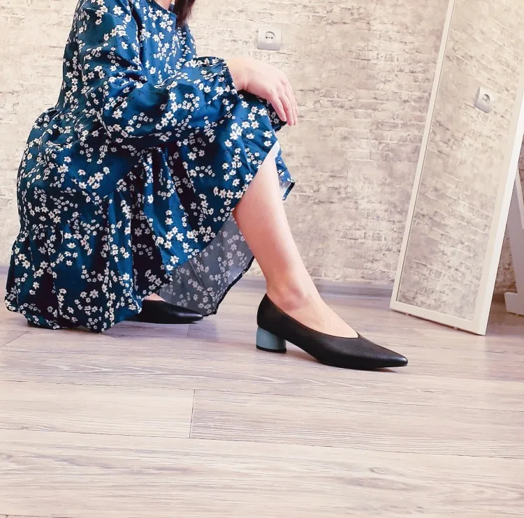 Шикарные туфли-лодочки на широком каблуке из натуральной кожи Туфельки идеально подошли по размеру и оказались очень удобными благодаря низкому ходу и тактильно приятной кожи. Туфельки полностью натуральные : верх из коровьей кожи,стелька из овечьей,а подкладка из свиной. Прошиты ровно,следов клея нет. Только весной я смогу сказать, насколько они удобны,но пока я ими очень довольна Inst : tanya_and_aliexpress