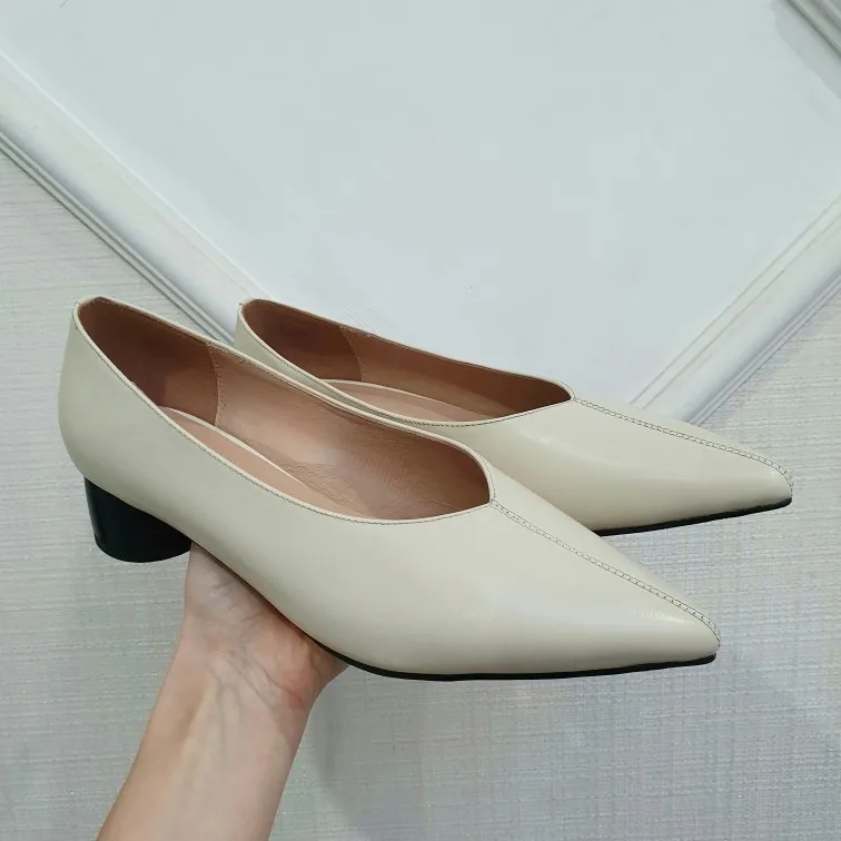 Женские туфли-лодочки с острым носком QUTAA, черные туфли из мягкой натуральной кожи, на среднем каблуке, для весны и лета, 2021