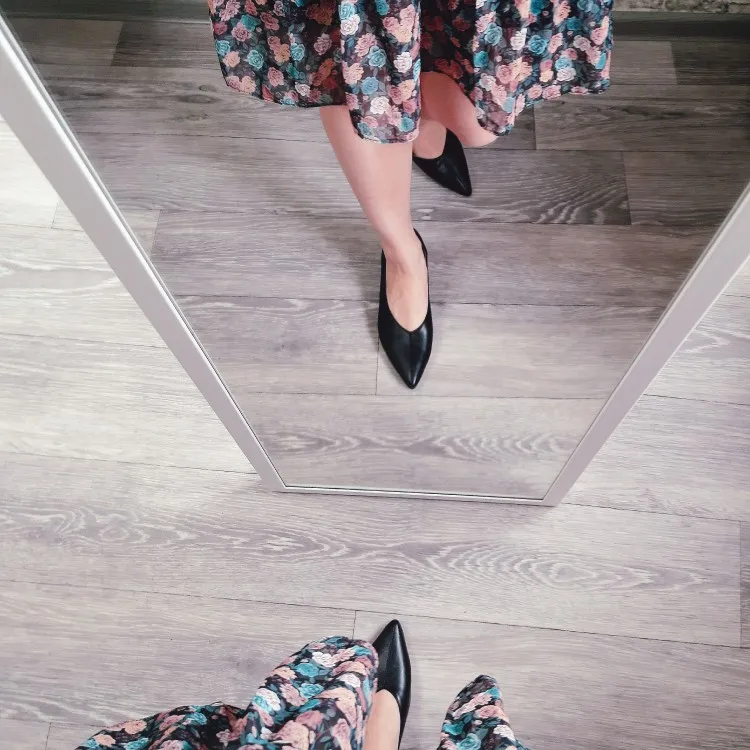 Туфли очень стильные, и еще из натуральной кожи! ☆ Доставка ровно месяц с момента заказа. Упакованы отлично(в почтовый пакет + надутый воздухом объемный корпус), при перевозке не пострадали. ☆Размер выбирала по таблице продавца. На стопу 23,5 см размер 6 подошел идеально. Поначалу немного давила пятка и пальцы, но спустя примерки три они разносились. Теперь я ношу их даже без капроновых колготок. ☆Выполнение очень хорошее, ни одной торчащей нитки, но если сильно придраться, то клей найти можно, но неворуженным глазом он незаметен. ☆Важный момент: подходят на узкую стопу. ☆ Материал верха и внутренней подкладки - мягкая натуральная кожа. Ноге очень комфортно: не потеет и не появляется запах. ☆ Острый нос, он имеет свойство заламываться перед пальцами. Смотрятся очень современно. Высота каблука 3,5 см. Ходить удобно. Очень понравились! К покупке рекомендую. Больше подробных фото/видео обзоров вы можете найти в инстаграм: dasepa09. Буду рада каждому новому подписчику.