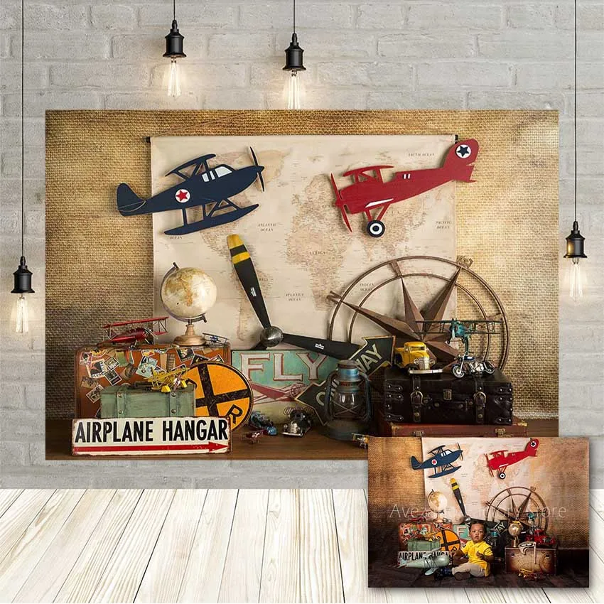 Фон Avezano для фотосъемки в ангаре с самолетом для портретов новорожденных детей на день рождения, путешествий, приключений, баннера для фотостудии