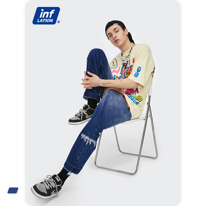 Джинсы мужские прямые, рваные, в стиле хип-хоп, весна 2021, 3624S21