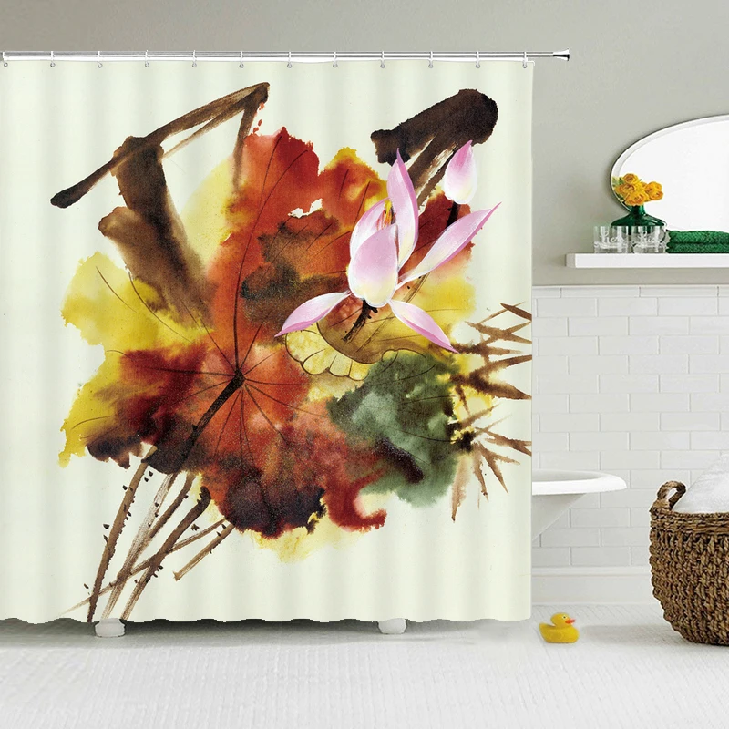 Занавеска для душа с красивыми цветами и принтом лотоса, s Водонепр...