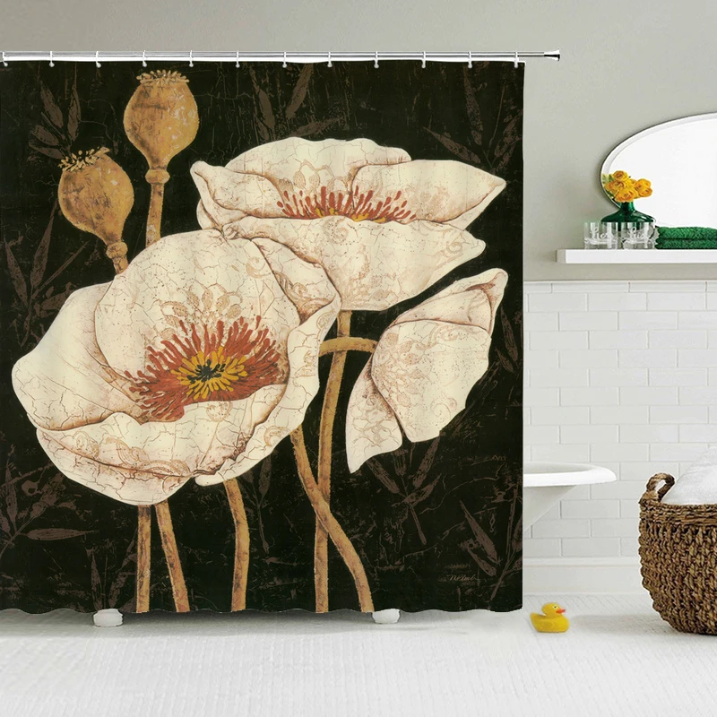Занавеска для ванной с 3D цветочным узором, s занавеска для ванной с рисунком маслом, с цветами, домашний декор, водонепроницаемая ткань из полиэстера