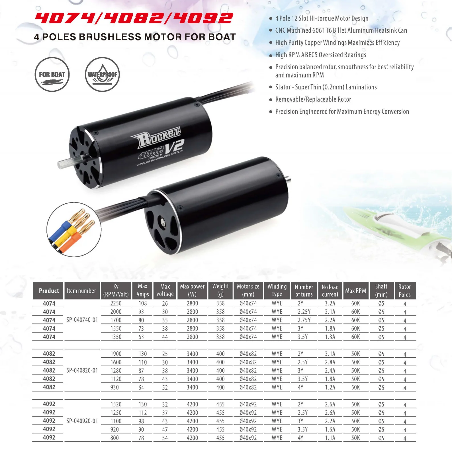 Rocket 4082 бесщеточный мотор Водонепроницаемый 5 мм вал 4 мм контр...