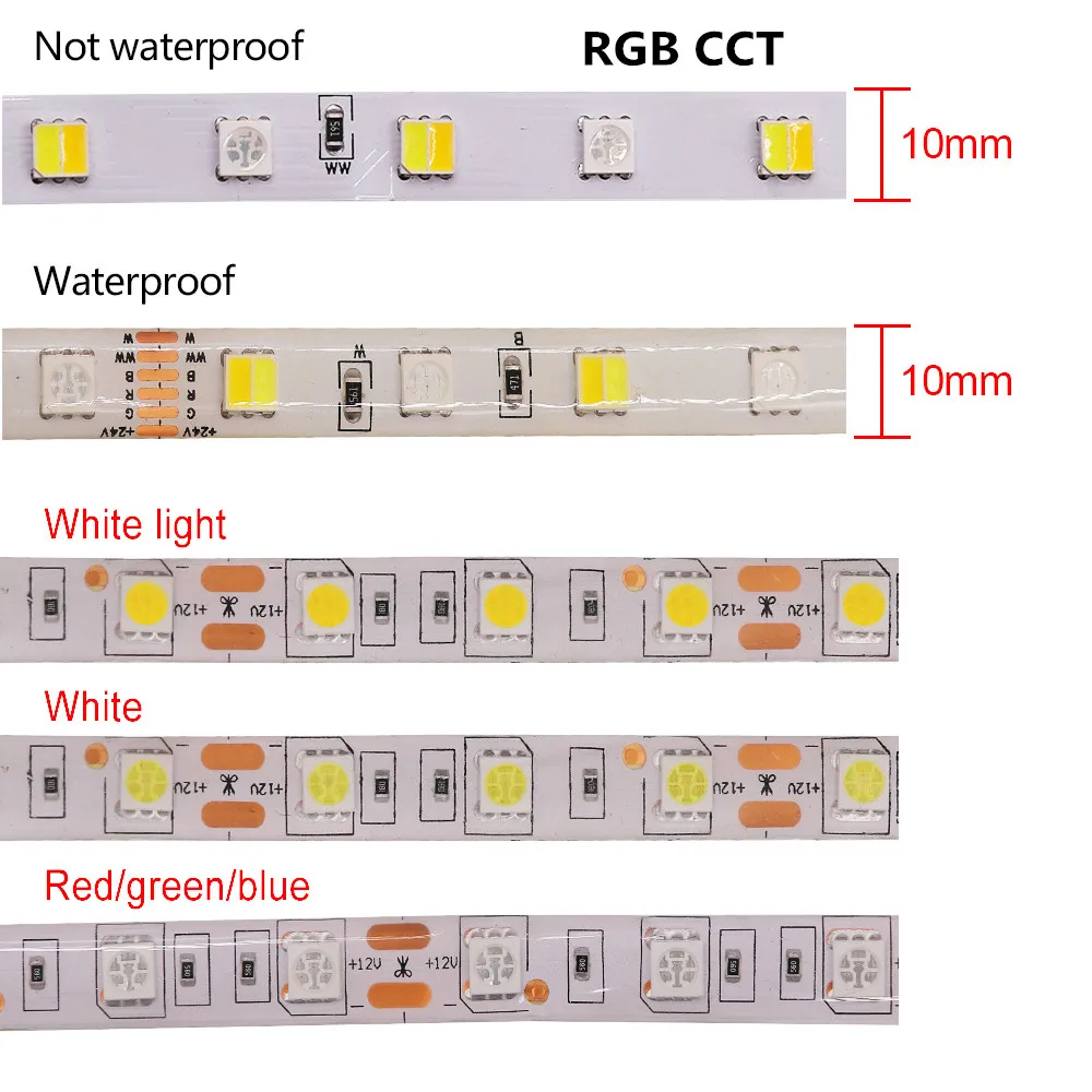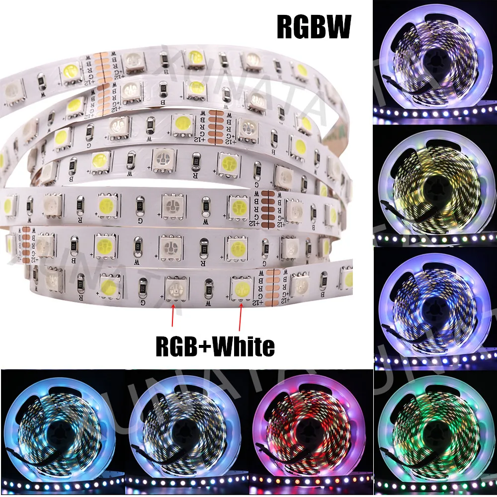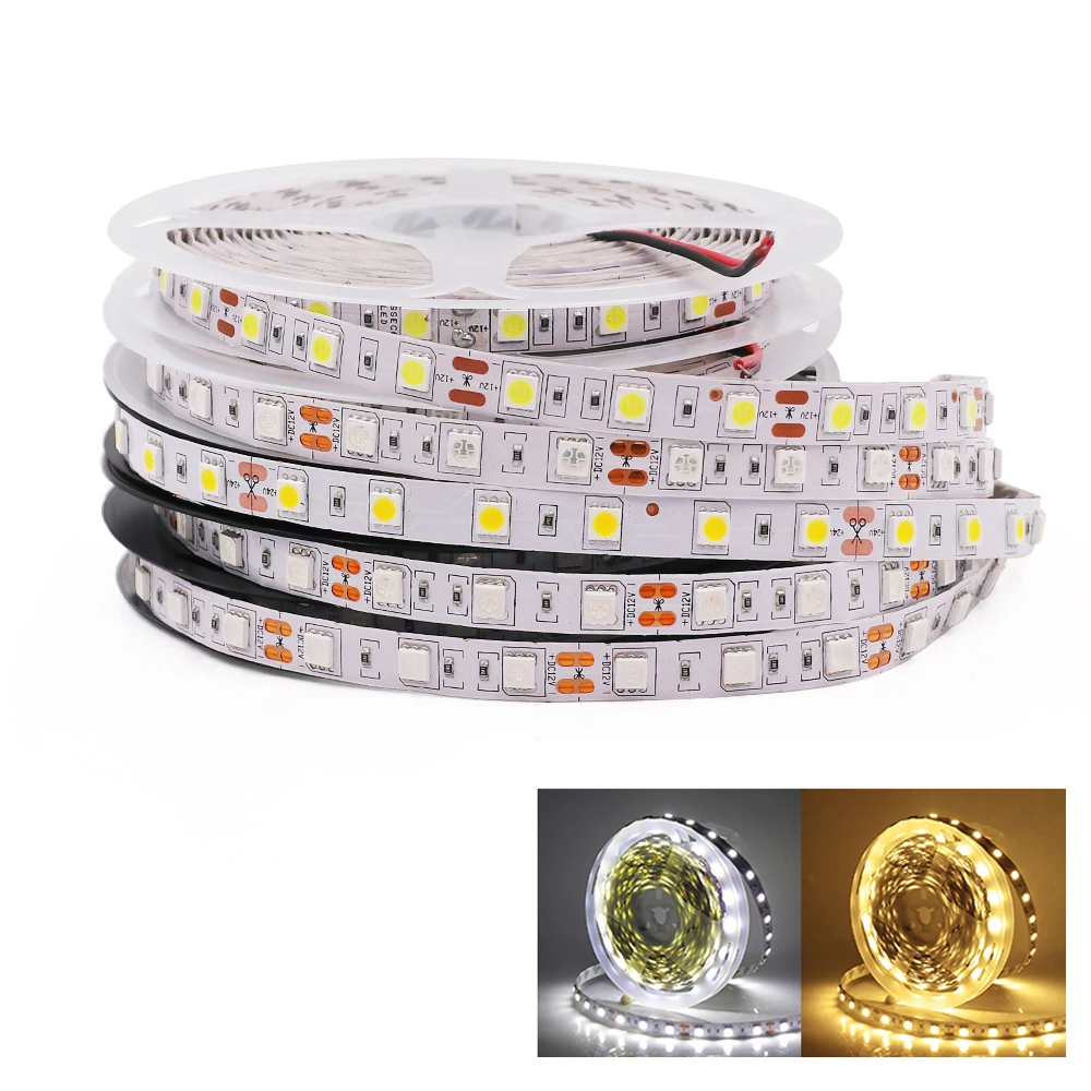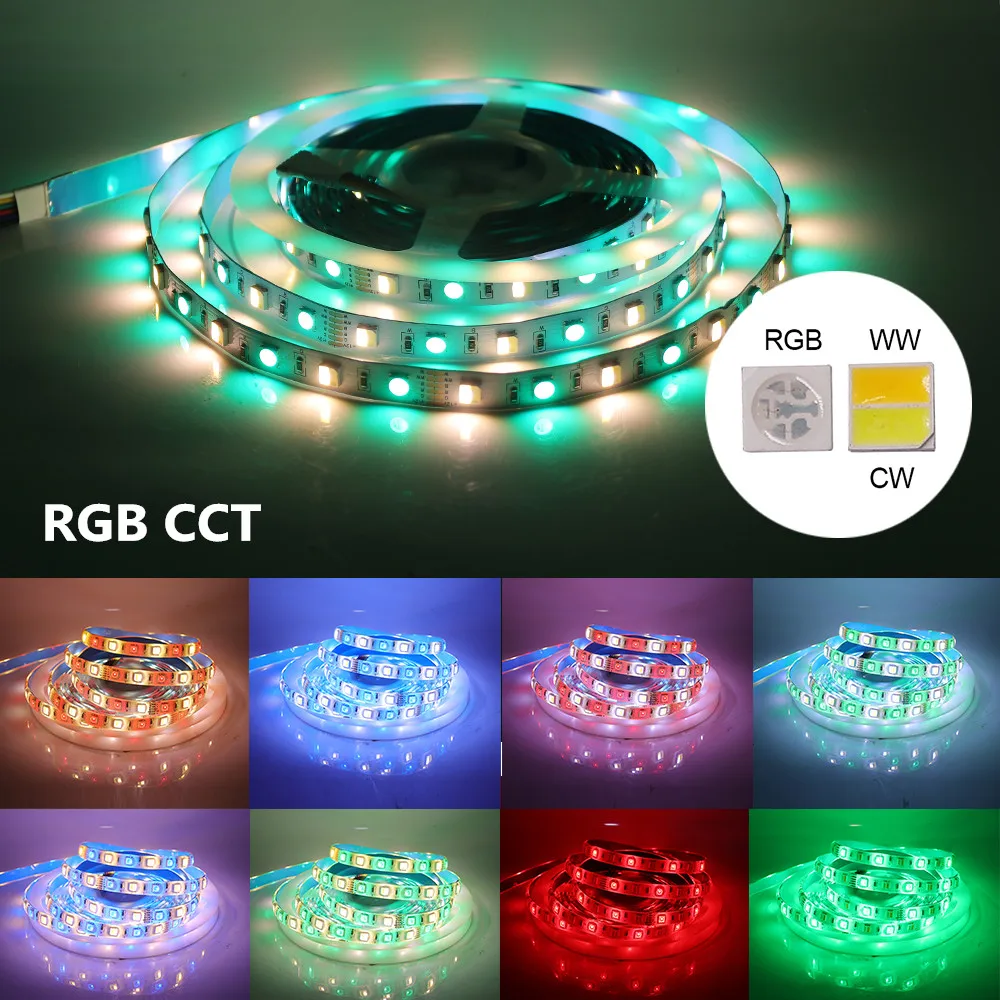 5050 Светодиодные ленты DC 12V 24V, RGBRGBW RGBCCT белыйтеплый белый IP21 IP65 IP67 60 светодиодовм Гибкие светодиодные ленты светодиодный светильник лампа 5 м