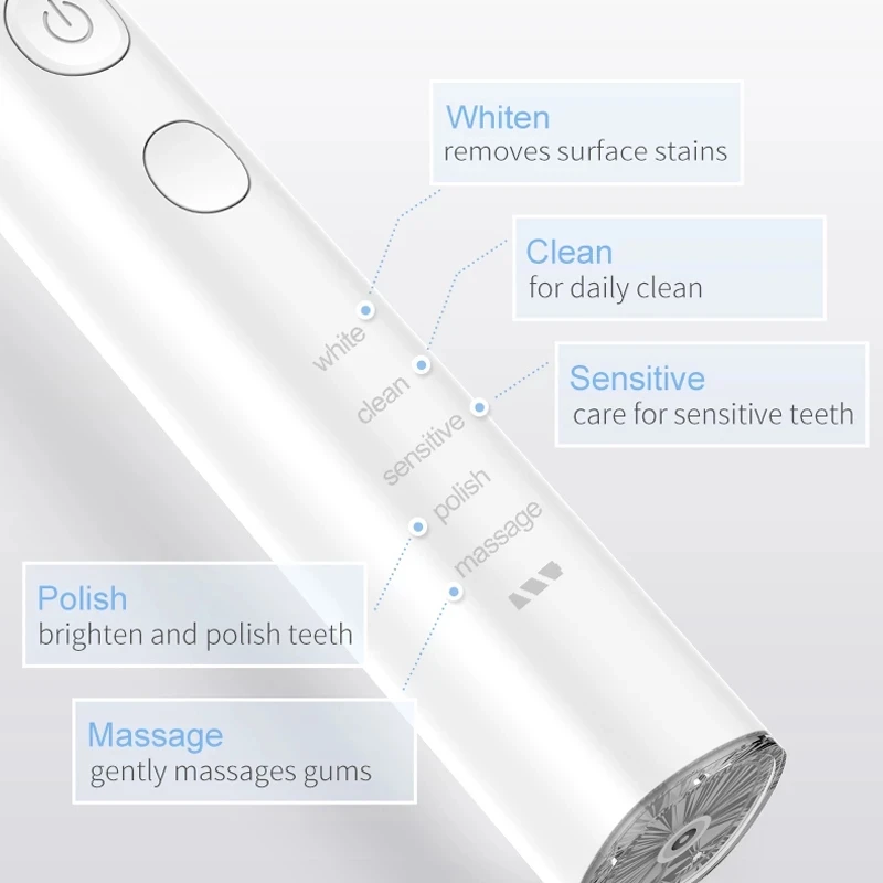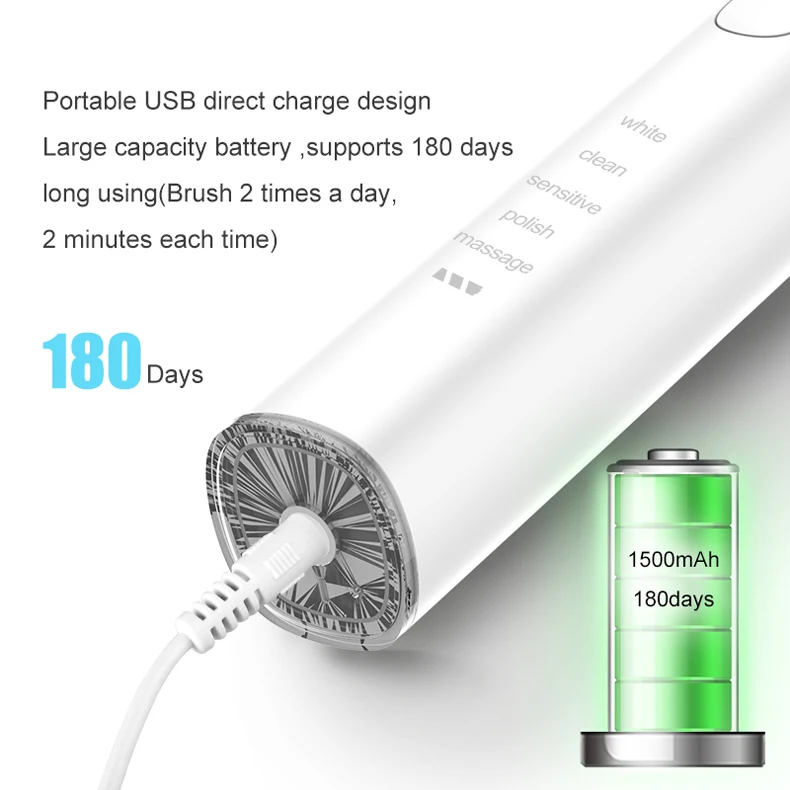 5 modesWhite, Clean, Sensitive, Polish, Massage