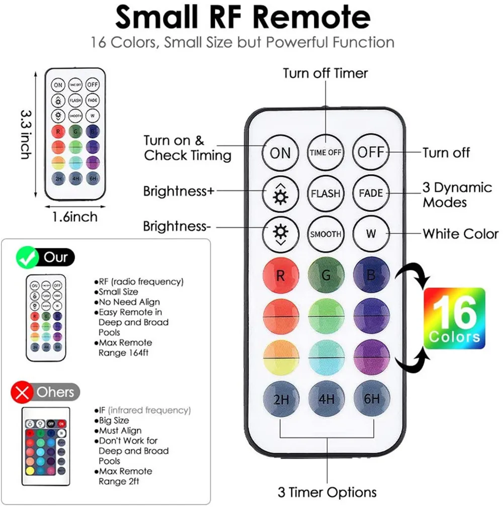 Многоразовые: работает от 3 батарей AAA, легко заменить, сэкономить деньги для вас Много цветов: супер яркий 10 led Встроенный, 4 динамических режима изменения цвета, 16 различных цветов s в статических режимах. Водонепроницаемый: Светодиодный Светильник изготовлен из высококачественных двойных водонепроницаемых материалов, не беспокойтесь об этом при погружении в воду. Пульт дистанционного управления: беспроводной дизайн, ИК-пульт дистанционного управления, затемнение и включение/выключение. Многоцелевой: отлично подходит для цветочных ВАЗ, бассейна, аквариума, свадьбы, Рождества, вечерние или другие мероприятия