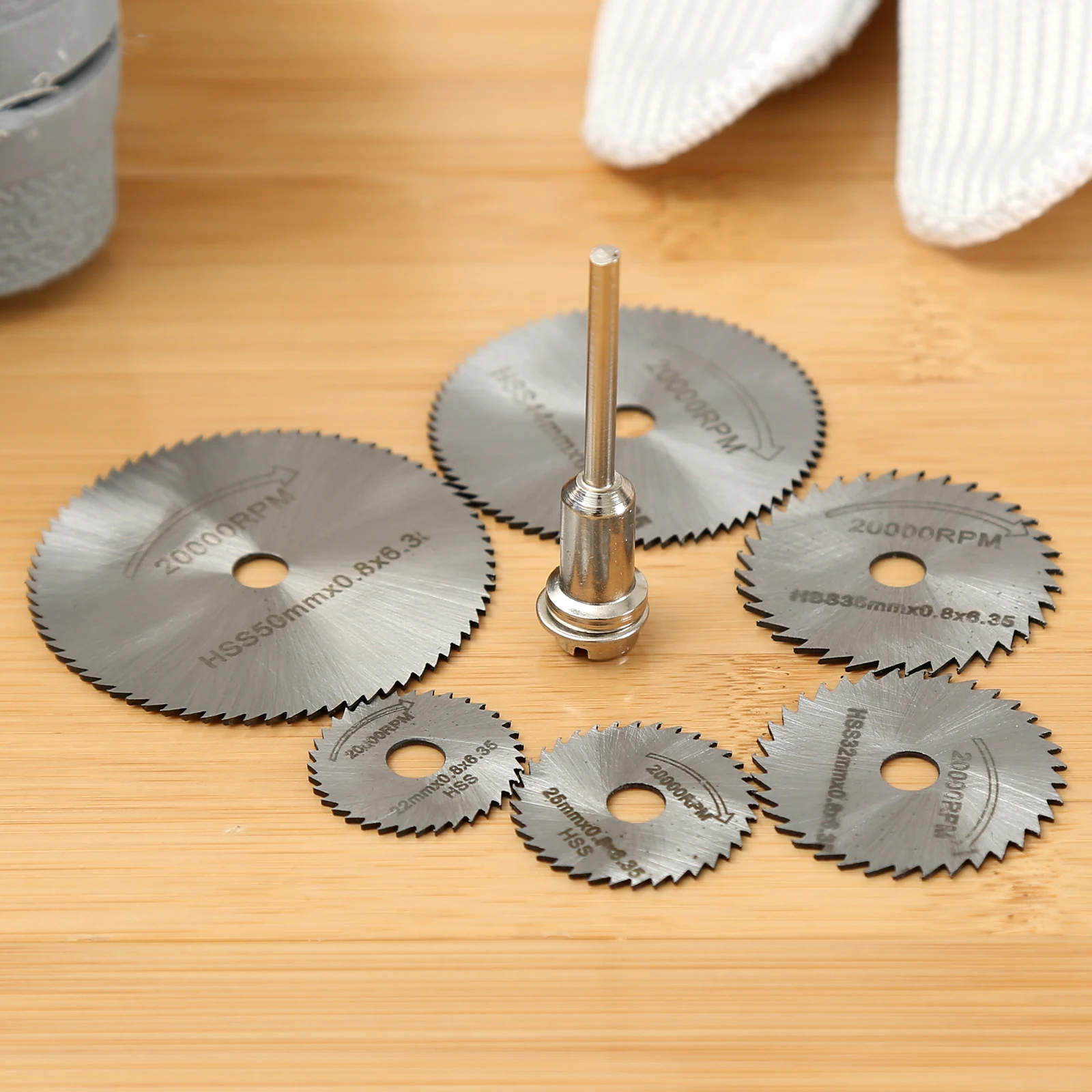 7 шт.компл. 22-50 мм абразивный диск из быстрорежущей стали, Дисковые Диски для циркулярной пилы, режущие диски + оправка 3,17 мм, лезвие для пилы по дереву, Аксессуары Dremel