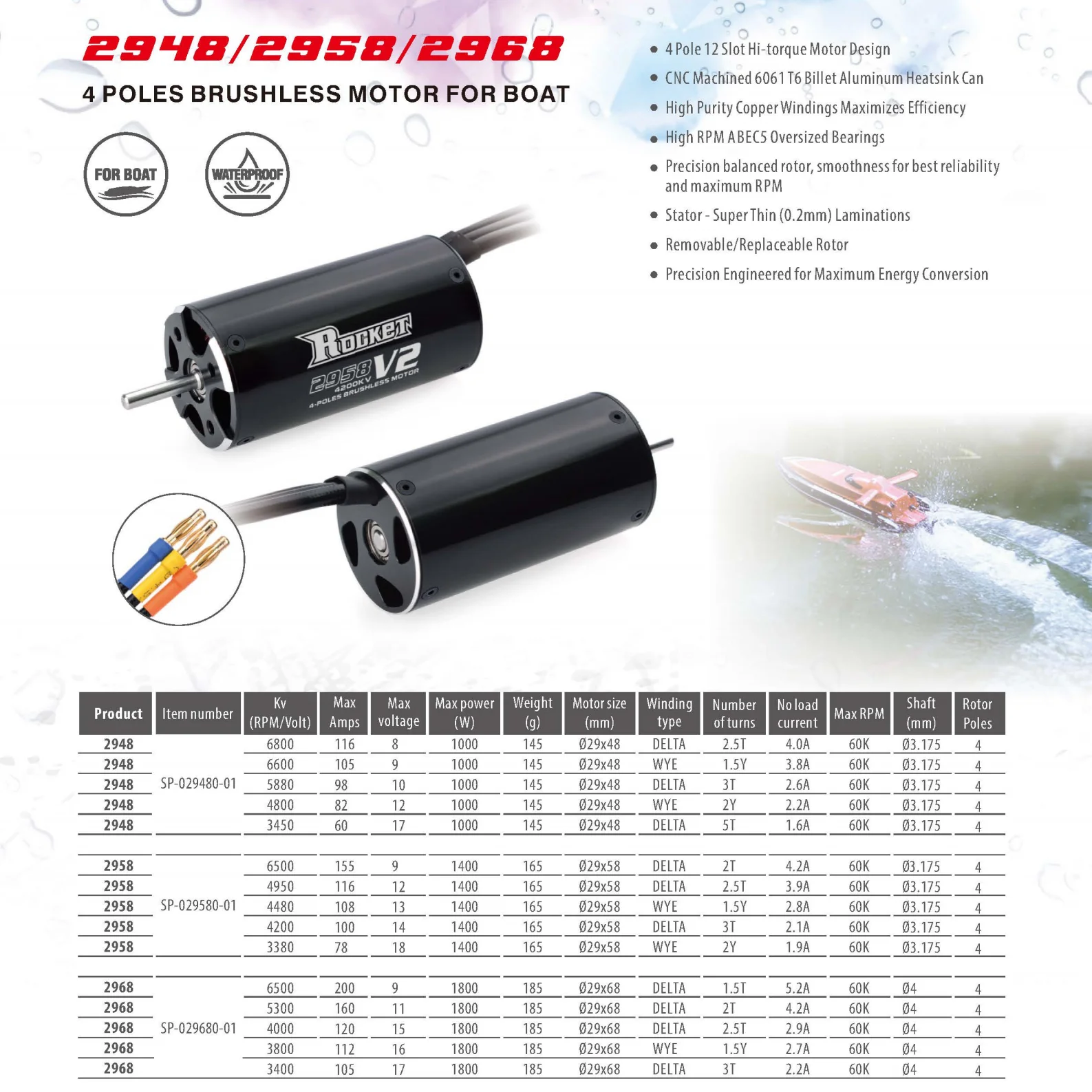 Водонепроницаемый бесщеточный двигатель Surpass Hobby ROCKET 2958 4...