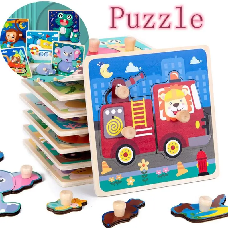 Детский деревянный 3D-пазл с животными, игрушка Монтессори, деревянная доска для захвата рук, пазл, рассказывающая истории, игрушка для укладки, для детей