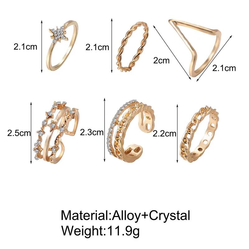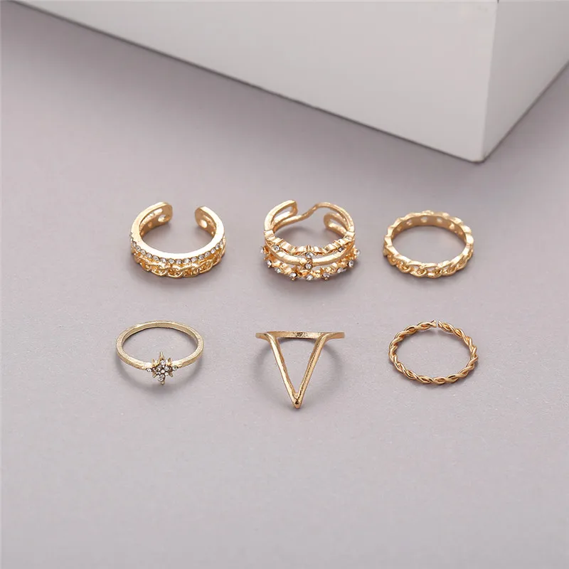 17KM модные золотые кольца на костяшки для женщин в стиле бохо многослойное кольцо с кристаллами Луна Звезда комплект колец на палец 2021 женские ювелирные изделия