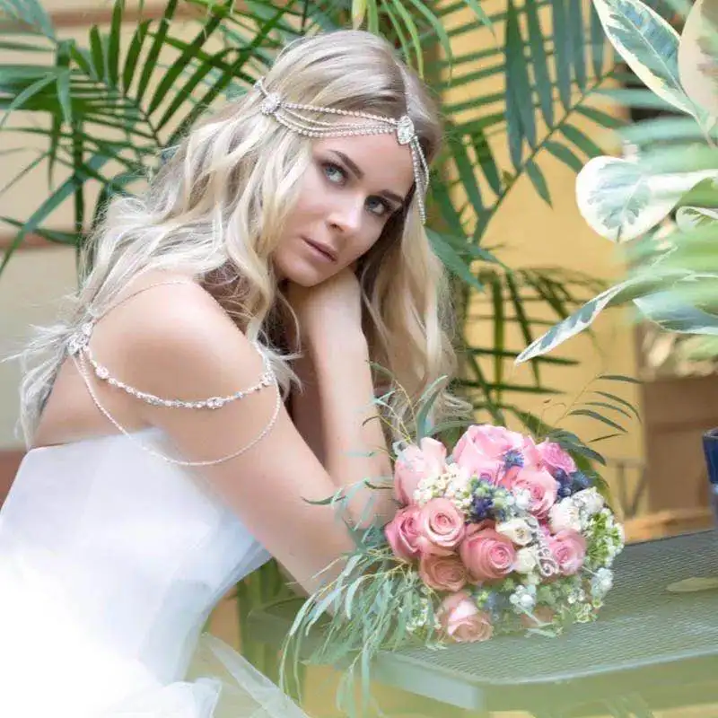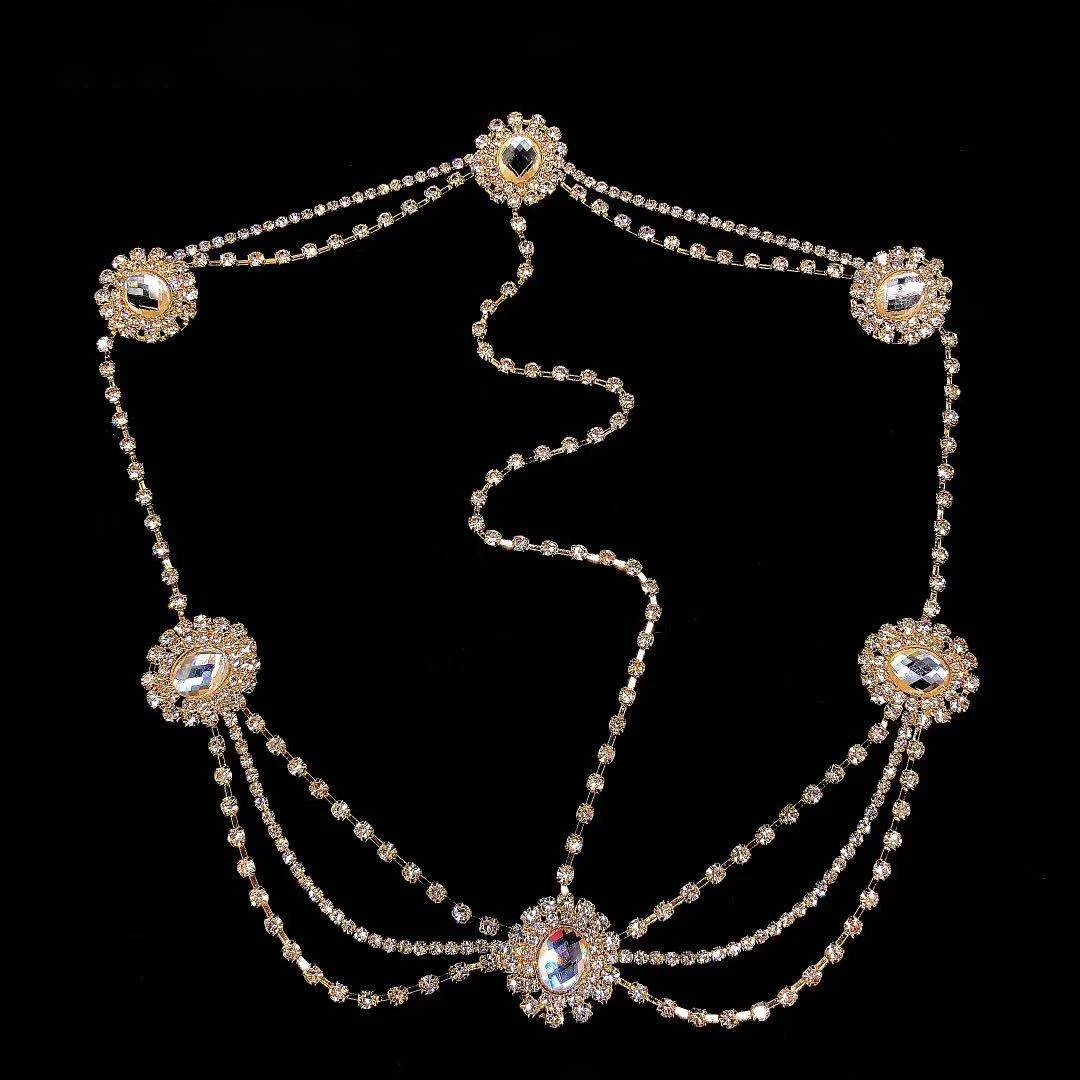 Цепочка для волос Свадебная, с круглым кристаллом, в богемном стиле, обруч с камнем