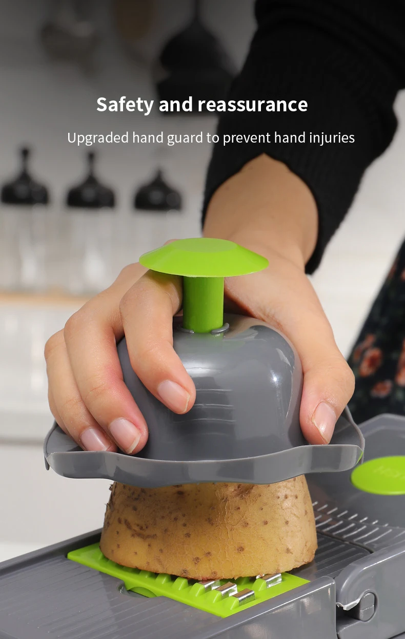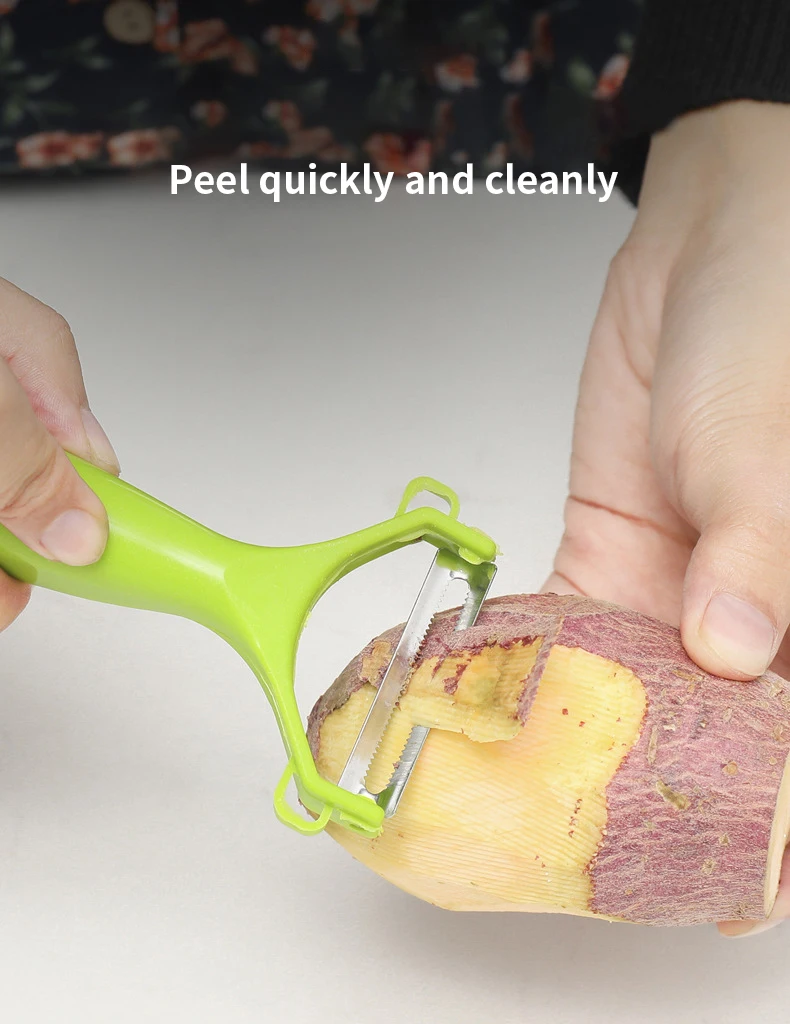 1. Этот ручной нож из пищевой нержавеющей стали и АБС-пластика без бисфенола А предлагает все функциональные возможности нескольких приборов со сменными нержавеющими лезвиями. Эти лезвия могут прорезать все виды овощей, нарезать сыр, нарезать картофель и Нарезать Фрукты, даже для создания пастообразных овощей или картофельного пюре.